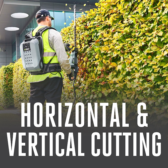 The 25″ EGO POWER+ Commercial Hedge Trimmer is equipped with dual action, hardened steel blades allow precise, clean cuts. The 1.3” cut capacity combined with up to 3,600 SPM work together to get the challenging jobs met by professionals done faster. The high-efficiency brushless motor allows for longer run time, low vibrations, and extended tool life. This trimmer is also equipped with fully serviceable blades to make sharpening quick and easy. Compatible with EGO POWER+ Commercial Series Backpack Battery (BAX1501) and Backpack Link (BHX1001). Experience Power Beyond Belief™ with the EGO POWER+ Commercial Hedge Trimmer.