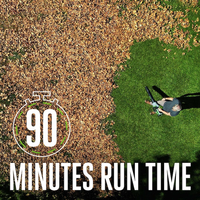 - Average run time of 90 minutes: 15 mins on Turbo, 150 minutes on low with included 5.0 Ah ARC Lithium™ battery