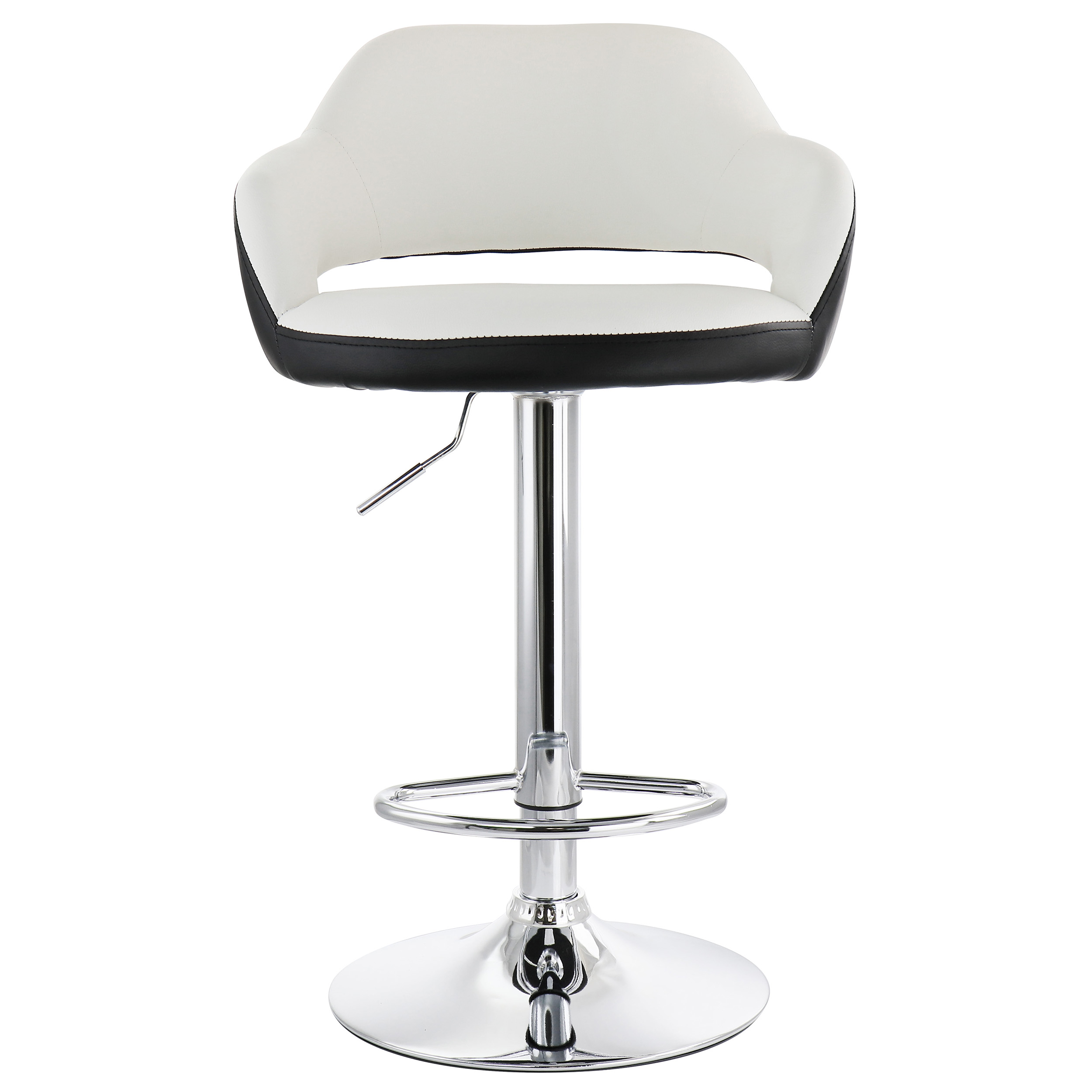 Elama 2 Piece Adjustable Faux Leather Bar Stool in White with Black Trim and Chrome Base