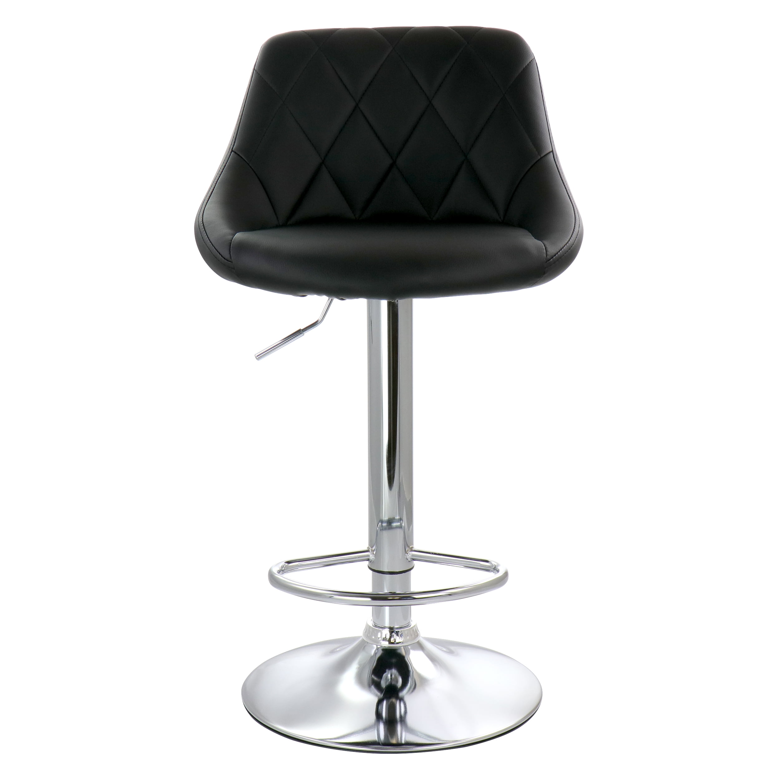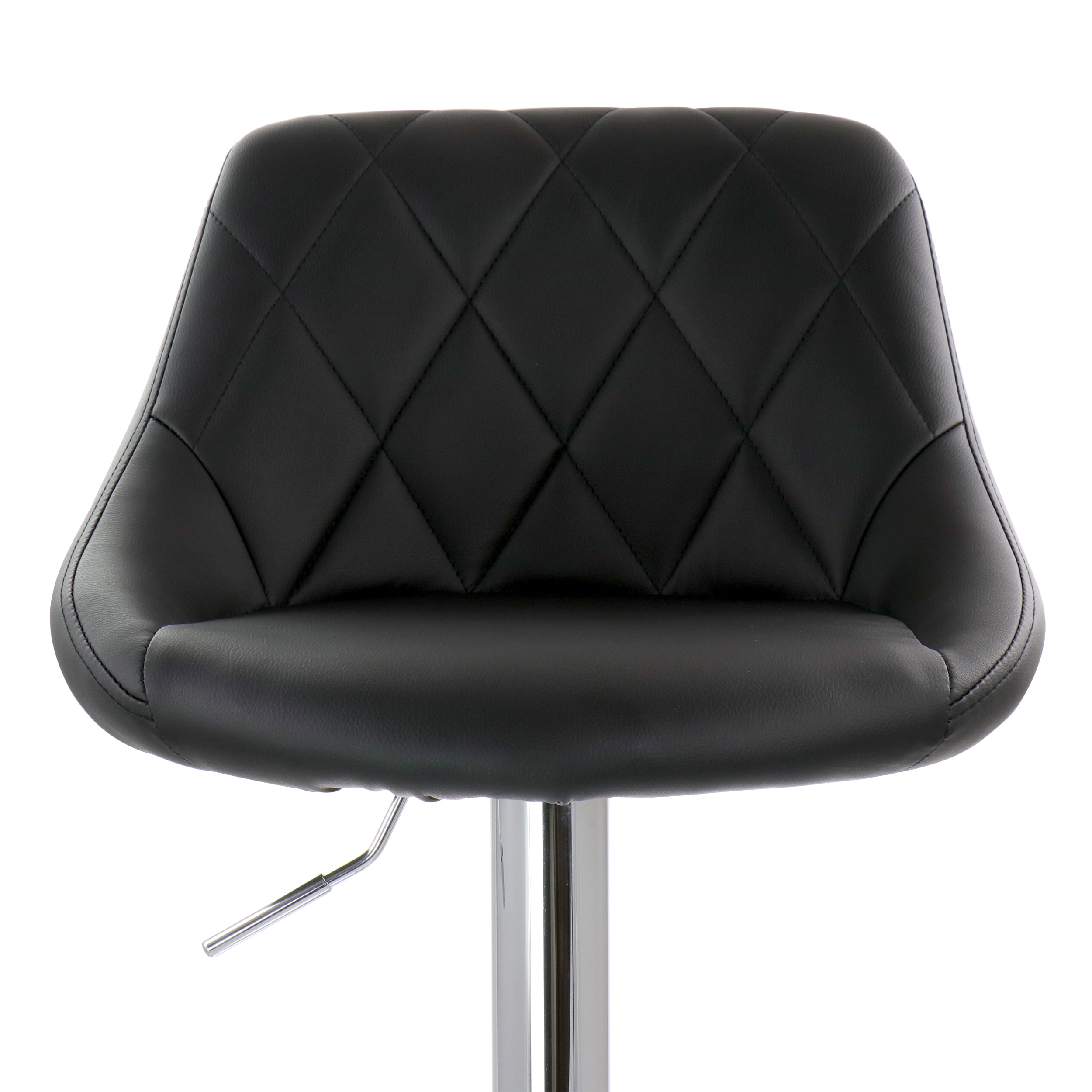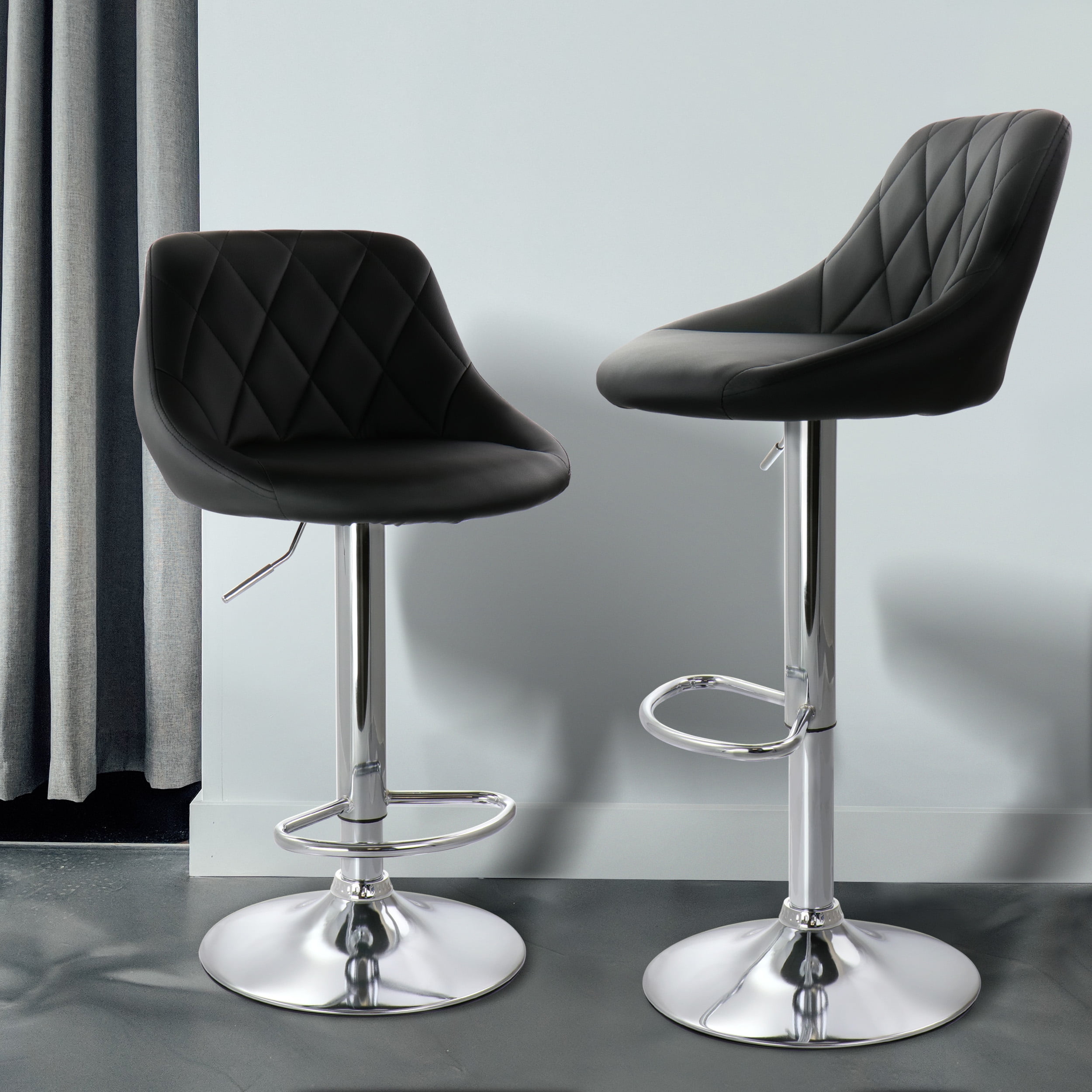 Elama 2 Piece Diamond Stitched Faux Leather Bar Stool in Black with Chrome Base and Adjustable Height