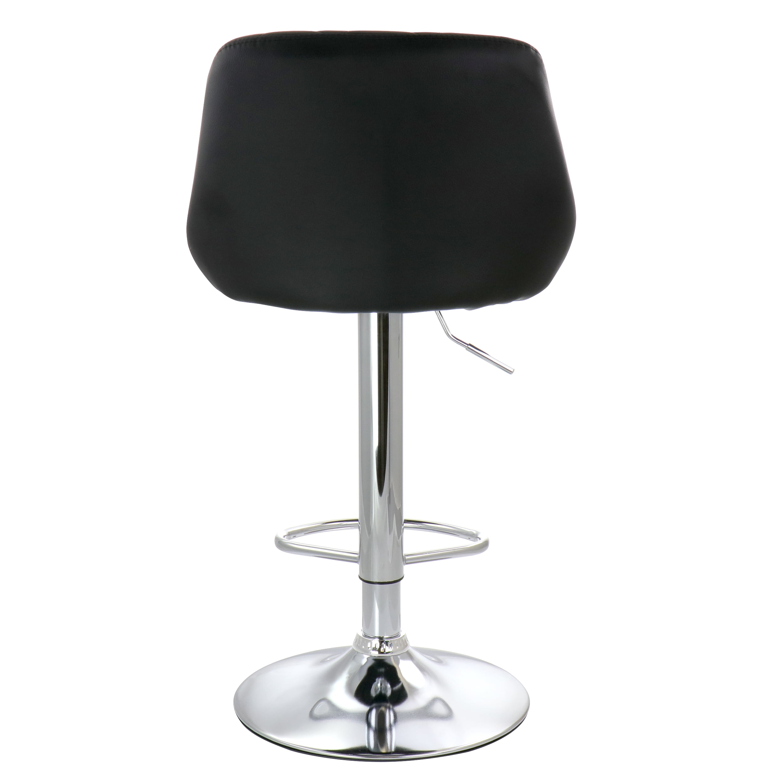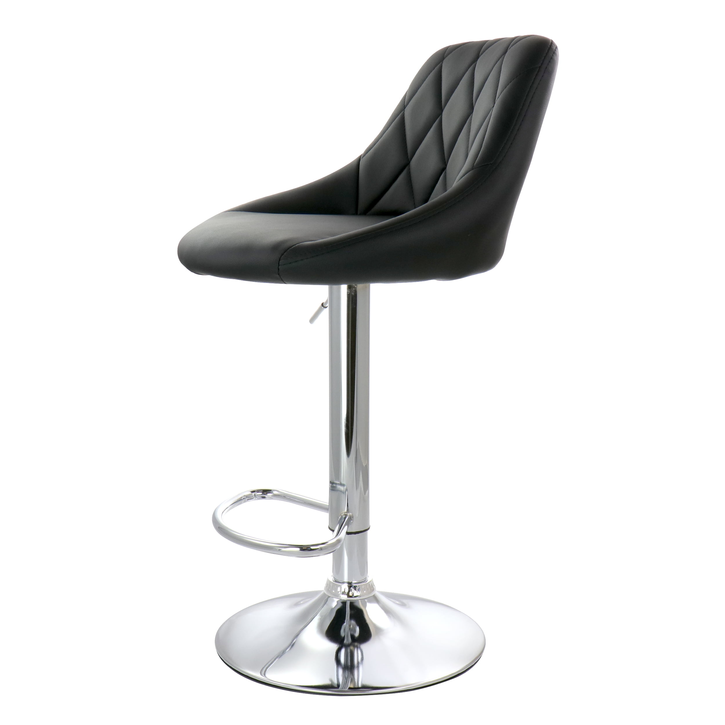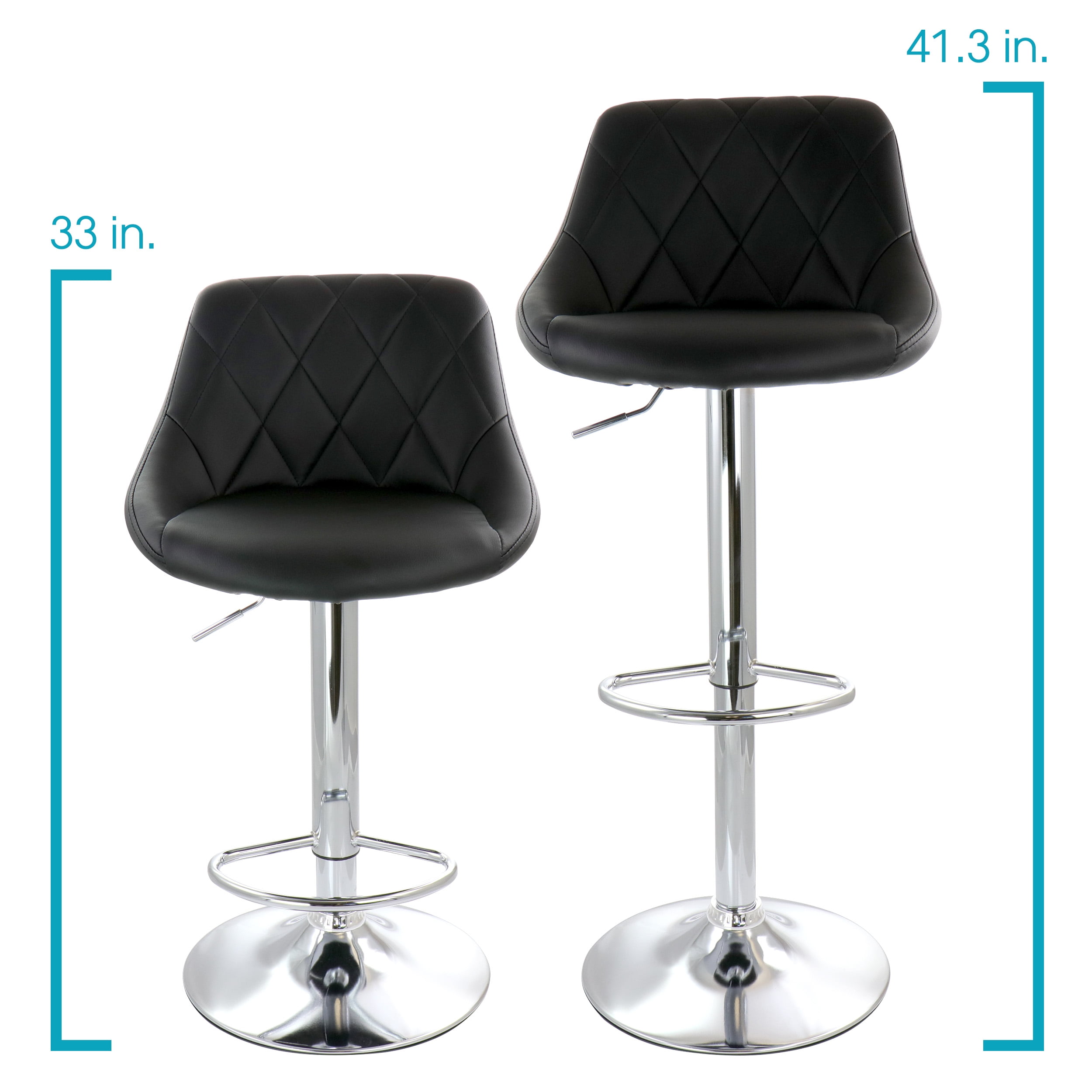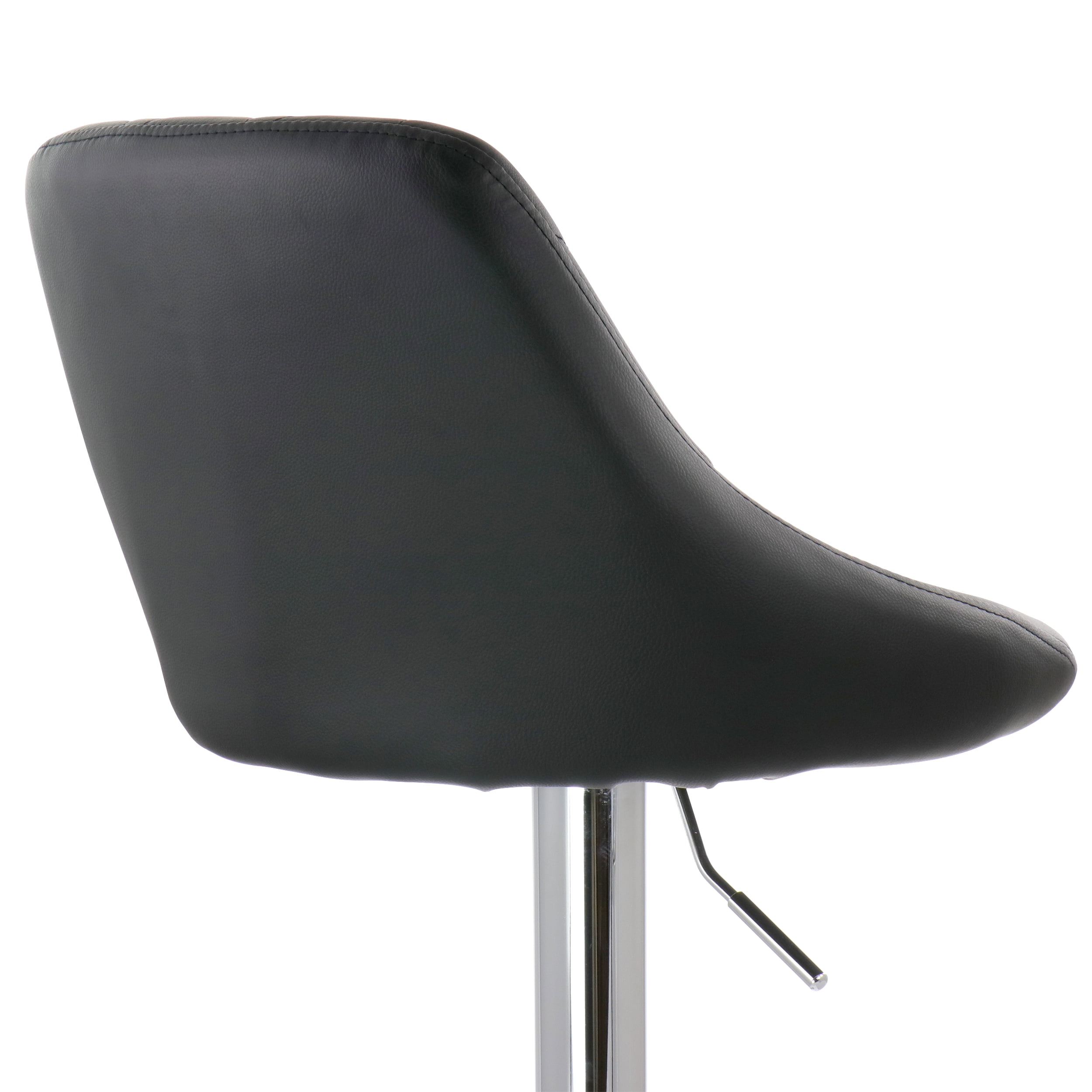 Elama 2 Piece Diamond Stitched Faux Leather Bar Stool in Black with Chrome Base and Adjustable Height