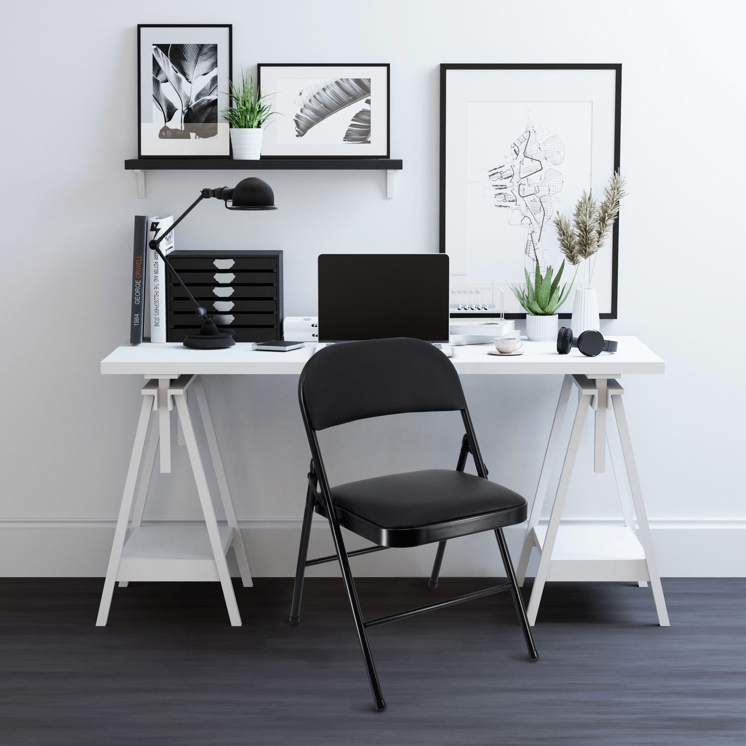 Elama 4 Piece Metal Folding Chair with Padded Seats in Black