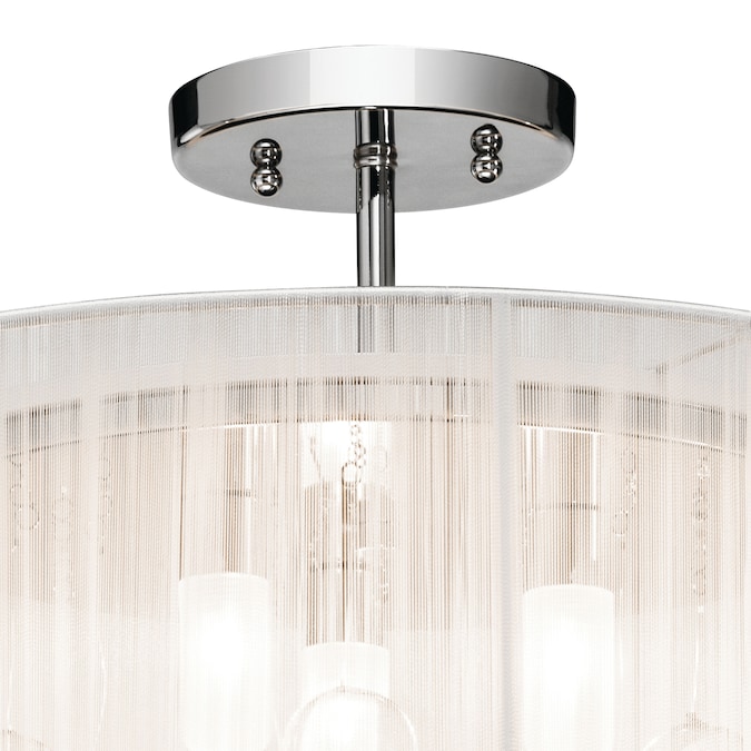 Delicate glass bubbles seem suspended in time and perfectly in place. The orbs float beneath the soft texture of the string shad resulting in a whimsical piece that evokes a carefree feel of childhood with a grown up aesthetic.