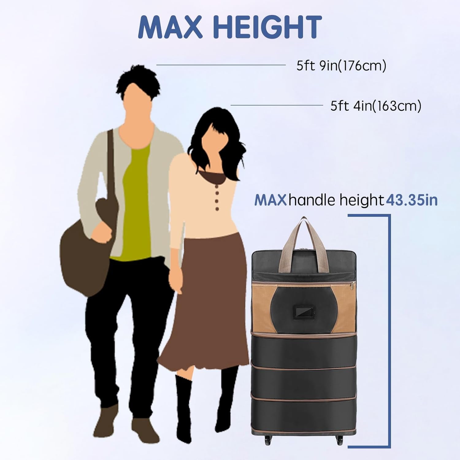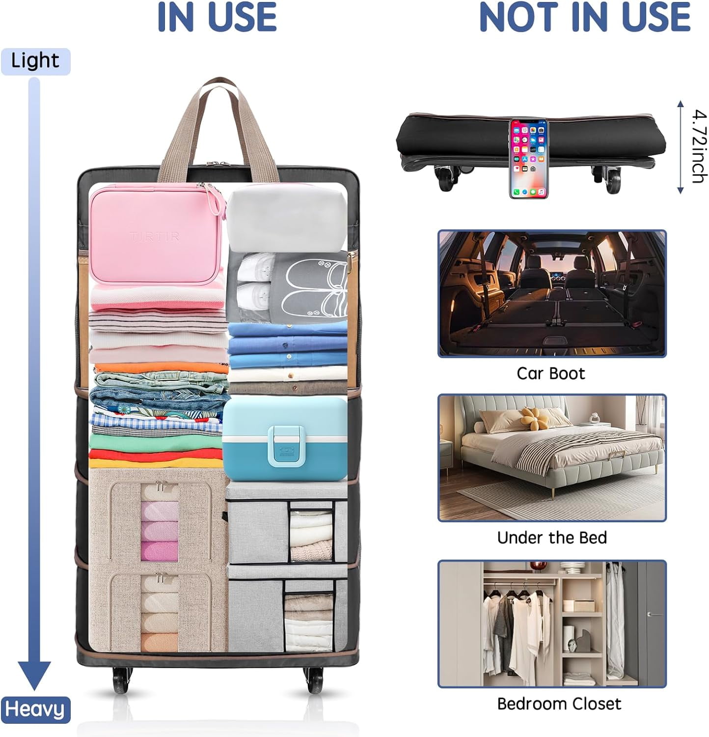 Large capacity luggage bag – This travel suitcase with wheels is Collapsible, convenient to organize different types accesorries. Warm tips: 1. Please allow 0.5-1 inch error due to manual measurement. 2. This product is more suitable for moving or daily short distance travel, air transportation is not recommended