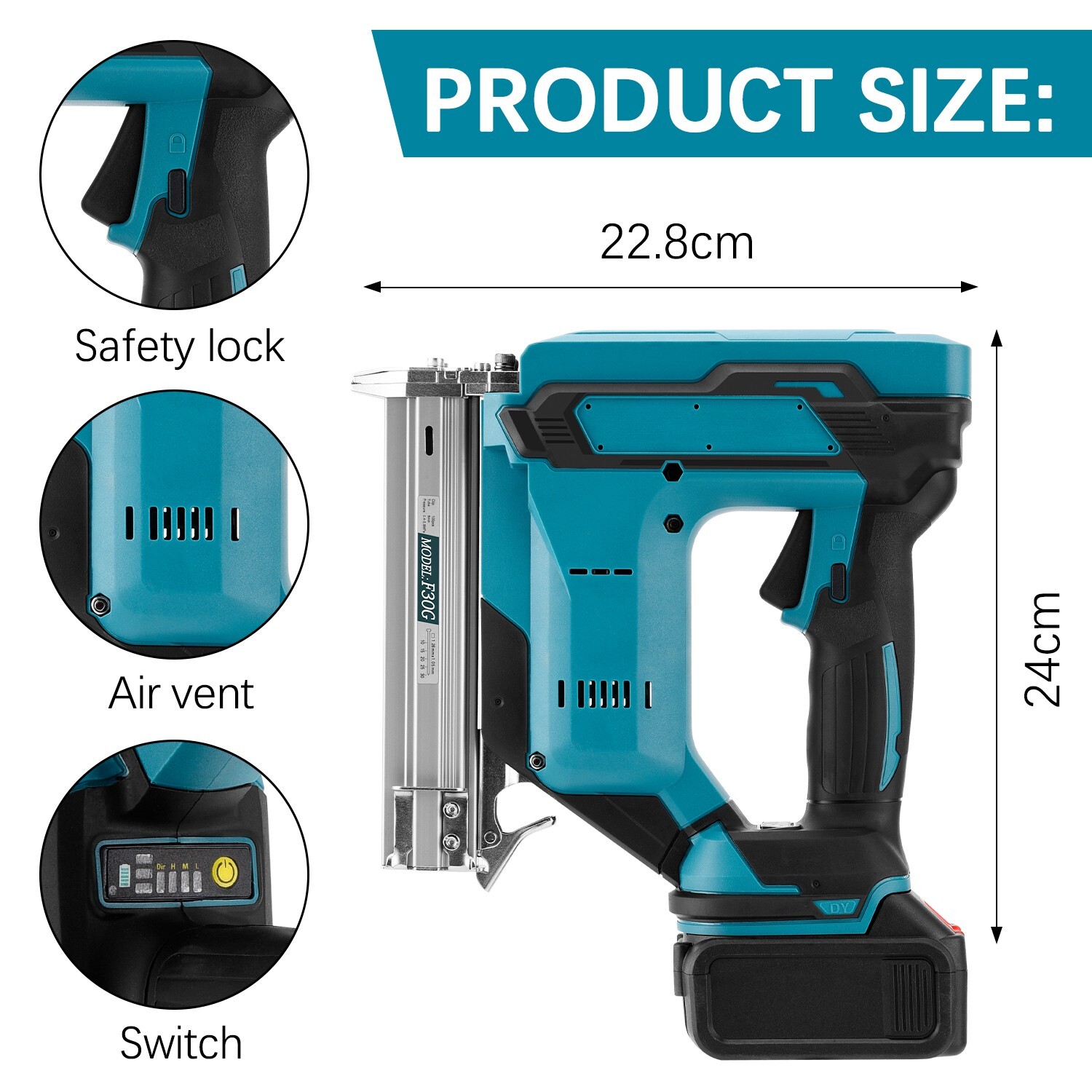 【5.2Ah High-Capacity Battery】Equipped with a high-capacity lithium battery consisting of 10 cells, the electric nail gun boasts a powerful and long-lasting range, supporting 5000 consecutive nail shots. There’s no need to worry about insufficient power during operation. 【Rapid Fire with Cordless Nail Gun Design】The cordless brad nailer offers freedom of movement with no cords, allowing usage in areas without available outlets. Its fully cordless design eliminates the need for air compressors, hoses, or costly gas cartridges. Additionally, the motor design ensures consistent firing power across various materials and climate conditions. 【Versatile 2-In-1 Cordless Nail Gun/Electric Stapler】This 2-in-1 tool accommodates 18 gauge brad nails from 3/4″ to 2″ and 1/4″ crown staples from 3/4″ to 1-5/8″, making it suitable for various applications including woodworking, upholstery, flooring, roofing, door and window installation, fence repair, molding, trim work, and DIY projects like building pet houses. 【User-Friendly Design】Featuring an easy-release magazine, simply flip the latch to reload the magazine with up to 100 nails or staples. Additionally, a belt hook is included for convenient access and storage. 【Safety & Convenient Operation】With two working modes – precise single firing and contact firing – users have more control. The brad nailer gun only triggers when the safety pole is fully pressed, preventing accidental injuries due to human error.
