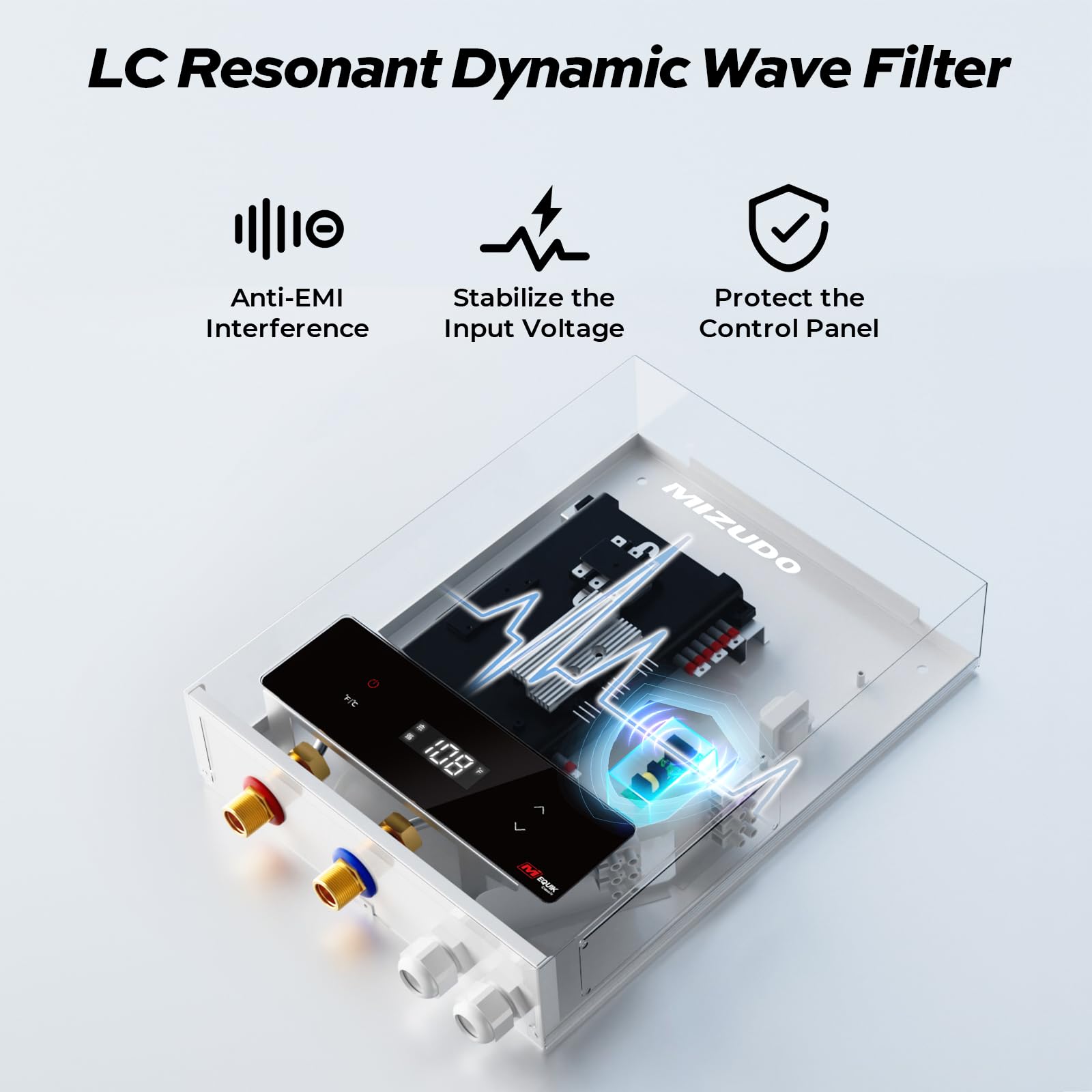 MIZUDO electric tankless water heater use heating methods, providing hot water quickly without the need to wait for a tank to heat up, and for any Sink, bathroom and Faucet use. Wall mounted, easy to install and no venting required. Heats water directly with a high thermal efficiency, avoiding energy loss from storing hot water. Package included Electric water heater x1, User Manual x1, Assembly Kit x1, Mounting Bracket x1 (circuit breaker not included). Hardwire to a dedicated circuit breaker.