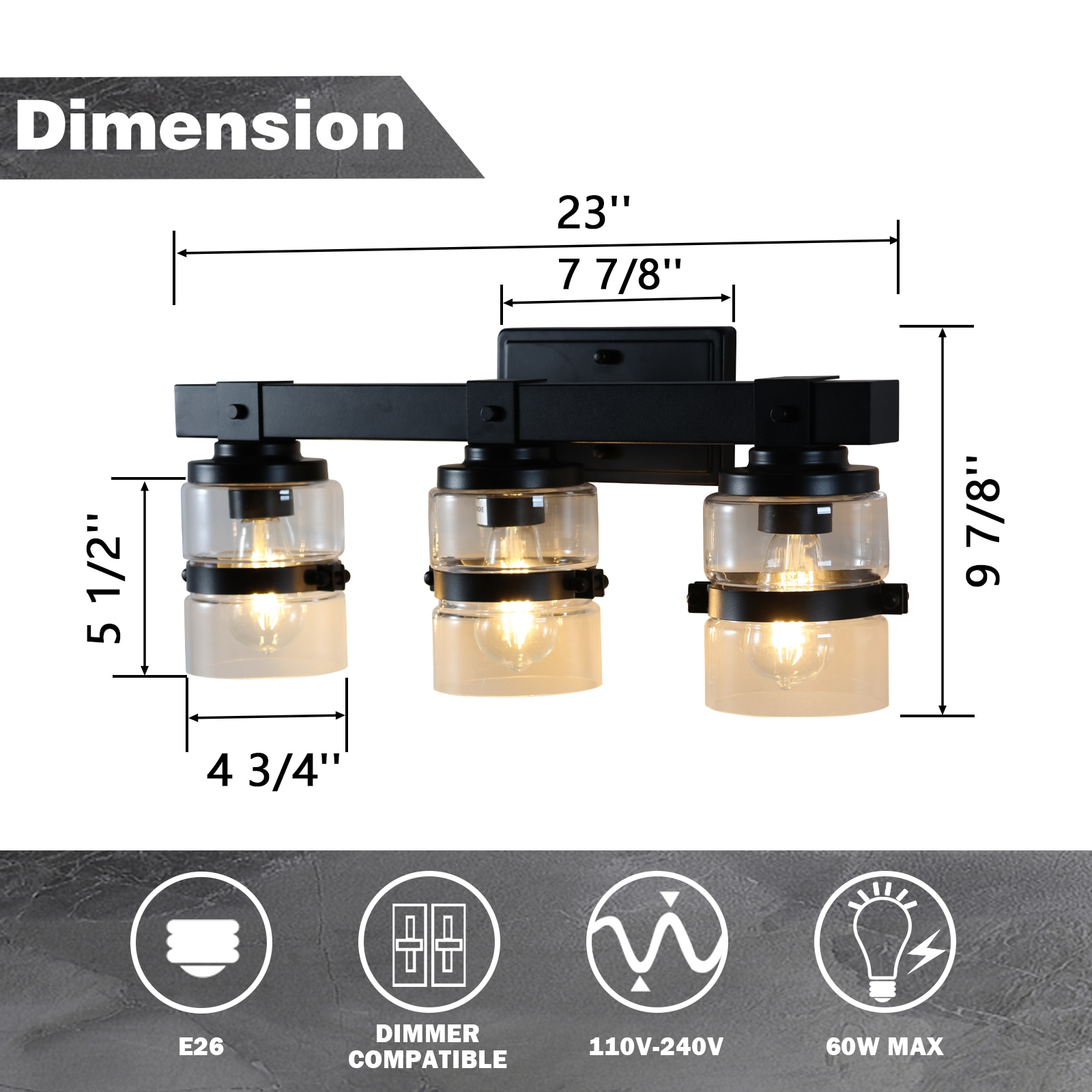ExBrite’s 24.4 inch 3 light vanity light brings an attractive industrial rustic feel to your home. Featuring a stunning metal wood style and black finish and glass shades, this wall fixture conveys both quality and character. ExBrite is constructed with quality materials and has been designed with attention to detail and suits styles such as rustic and country decor well. ETL listed for damp locations, mount above the bathroom mirror or vanity in your powder room with the shades pointed in either and up or down direction. Illuminate covered outdoor spaces like porches and patios. If you’re looking for a vintage look and feel, choose bulbs with an Edison style. Unlike our low priced competitors, Asher is ETL approved for your safety.