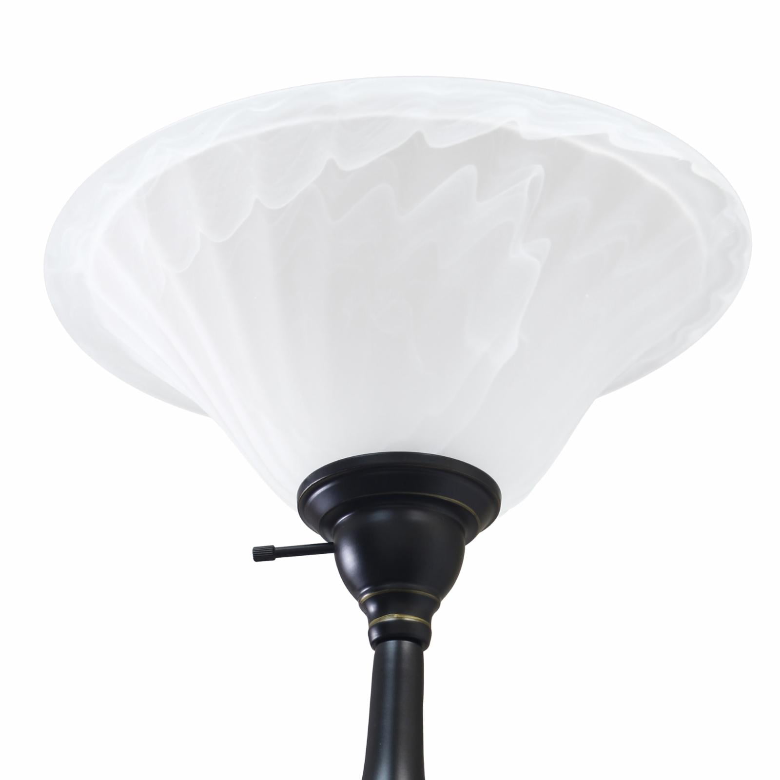 Light up your bedroom, office, foyer or living room with this elegant yet affordable two-light mother daughter floor lamp. It features a stunning restoration bronze finish and white marble shades with spiraled cut glass to complete the timeless look. Main Light Uses: 1 x 100W 3-Way Medium Base Type A bulb (not included) and Reading Light Uses: 1 x 60W Type A Medium Base Bulb (not included). Some assembly is required.