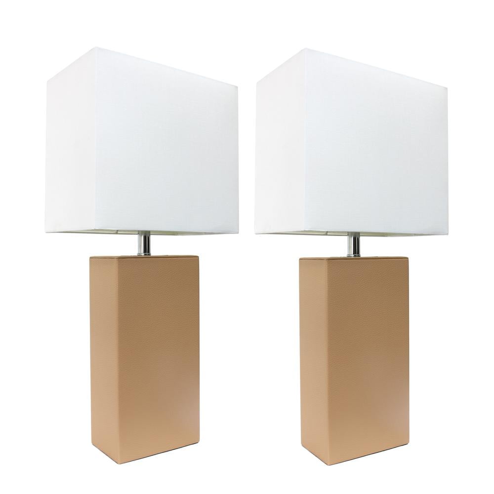 Elegant Designs 2 Pack Modern Leather Table Lamps with White Fabric Shades, Beige