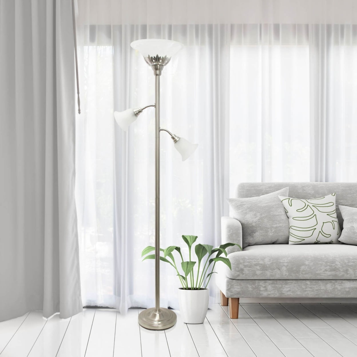 Elegant Designs 3 Light Floor Lamp with Scalloped Glass Shades, Brushed Nickel