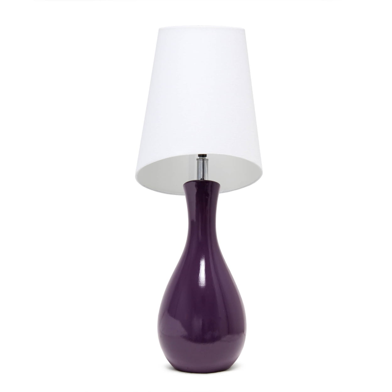 Elegant ceramic base in purple Comes with white fabric shade Transitionally styled table lamp with 6-ft. cord Requires 100-watt 3-Way type A medium base bulb (not included) Dimensions: 10L x 7W x 28H in.