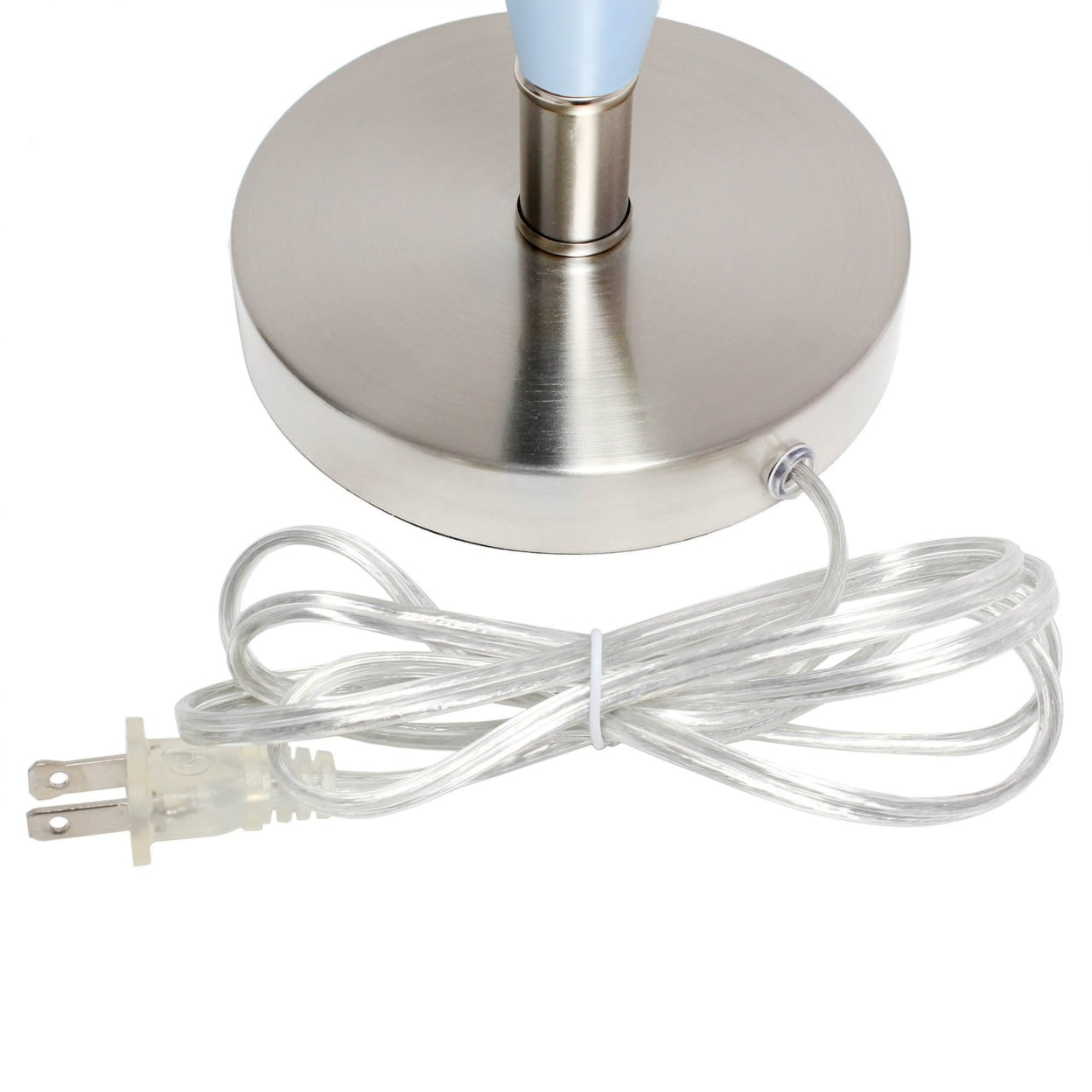 Elegant Designs Ellipse Transparent Table Lamp, Clear Blue Description: Illimunate your living space in style with this beautiful glass table lamp. The clear blue glass is accented with brushed nickel and a white fabric shade for a perfect blend of contemporary. Addto any room in your home for a tasteful and elegant upgrade! Clear blue oval glass base. White fabric shade. Easily accessible rotary switch located on the socket. Uses 1 x 60W medium type A base bulb (not included). Lamp measures D: 12″ x 22″, Elegant and contemporary look. Certification: UL/cUL Listed. Features: Style: Contemporary. Material Breakdown: 55% Glass+ 35% Fabric+ 5% Acrylic+ 5% Metal. Product Dimension: 12″L x 12″W x 22″H, Weight: 3.46 lbs. Bulb Type: Type A19, Incandescent. Switch Type: Rotary. Switch Location: Socket. Shade Diameter: 12. Shade Top Opening: 12. Shade Bottom Opening: 12. Shade Height/Slant: 9. Shade Shape: Drum. Number of Lights: 1. Maximum Wattage: 60. Shade Material: Fabric. Cord Color: Clear. Cord Length: 63. Primary Material: Glass. Height from Base to Socket/Shade: 13 + 3/12.5. Shade Security: Harp & Finial. Base Type: E26. Base Dimension: 5.5″L x 5.5″W x 16″, Bulb Included: No. Brand Name: Elegant Designs Model No: 1270-LT3307-CBL