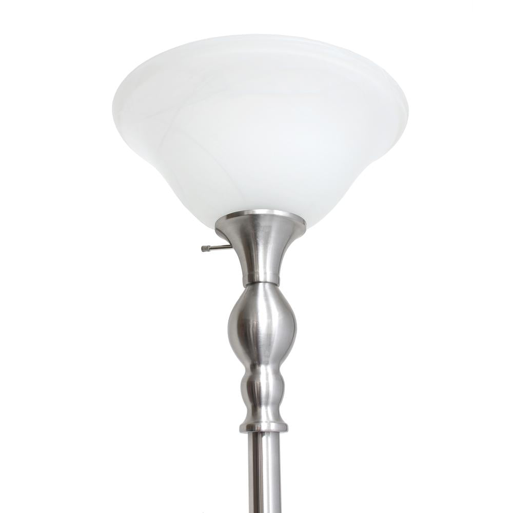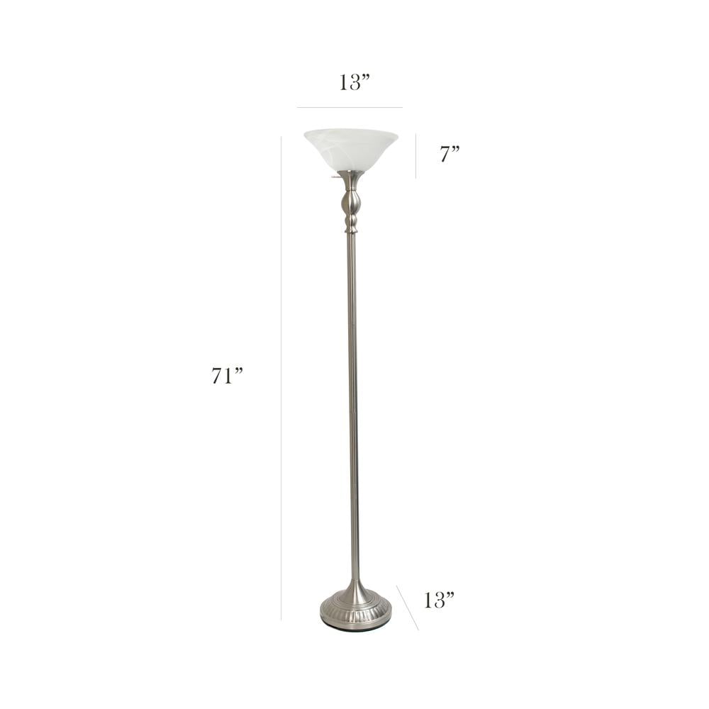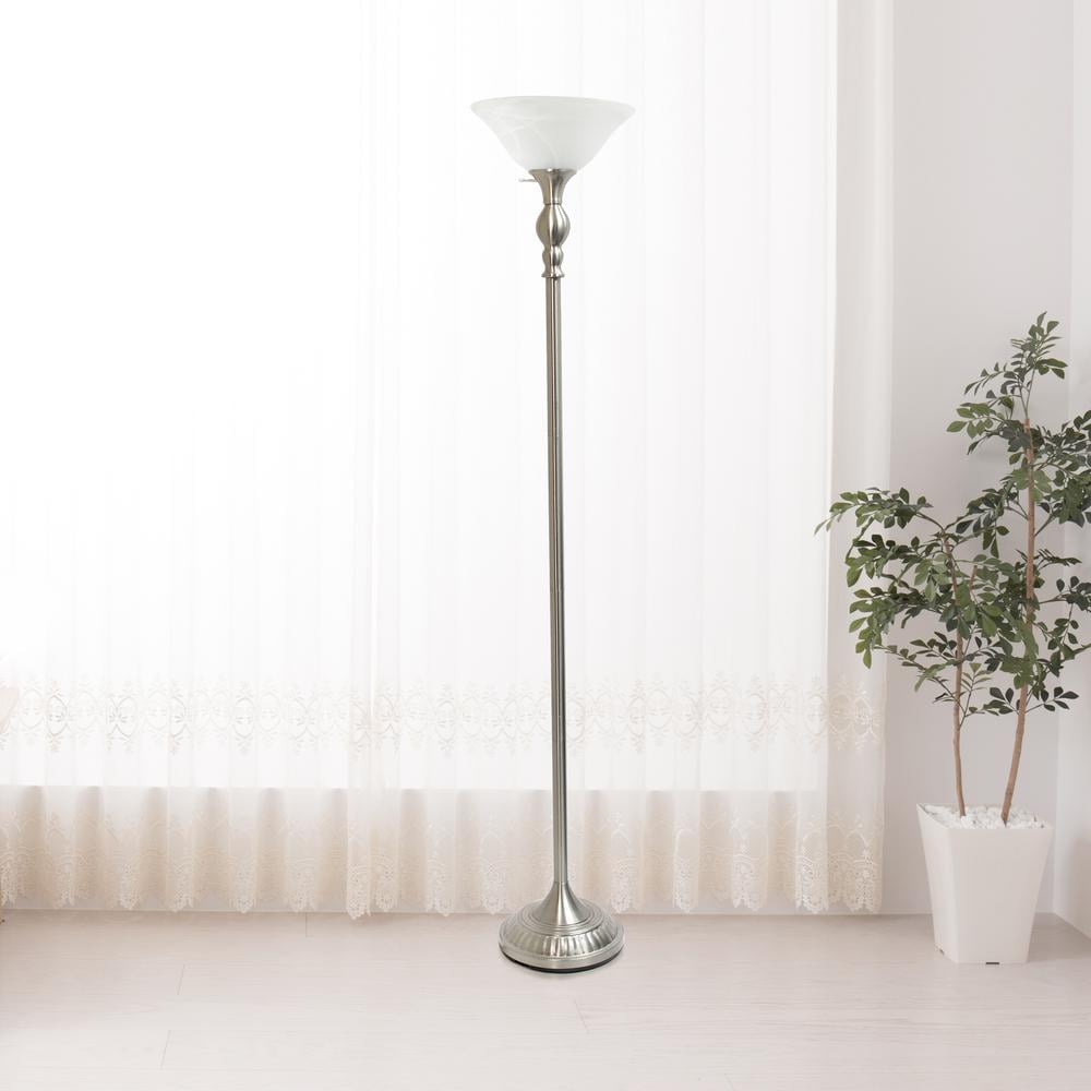 Elegant Designs 71″ Tall Metal Torchiere Floor Lamp, Brushed Nickel w/ White Marbleized Shade