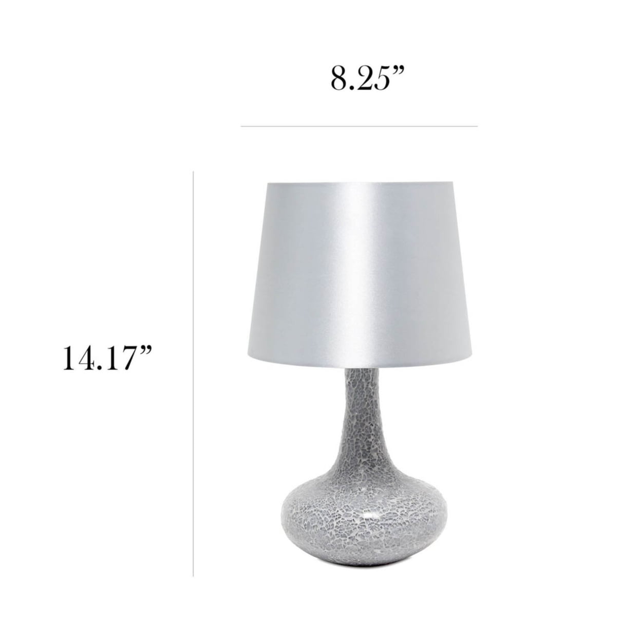 Elegant Designs Seashell Mosaic Look Table Lamp Description: This fabulous table lamp features the stylish Capiz shell look tiled mosaic pattern. Beautifully constructed blending muted shades of coral, gray and white. It is accented with a flawless chrome finish and a cream fabric shade. These neutral tones and slightly iridescent tiles will add beauty and charm to any room. We believe that lighting is like jewelry for your home. Our products will help to enhance your room with elegance and sophistication. Cream fabric shade. Flawless chrome finish accents. Capiz shell tile look forms gorgeous mosaic pattern on curvy lamp base. Height: 22.4″ Shade diameter: 10″. Coastal style. Uses 1 x 2-Way 60W Type A Medium Base Bulb (not included). Material Breakdown: seashell and fabric shade. Cerification: UL Features: Product Dimensions: 10″L x 10″W x 25″H. Product Weight: 3.1875 lbs. Bulb Type: Incandescent. Switch Type: Rotary Switch Location: Socket. Shade Diameter: 10. Shade Top Opening: 6.25. Shade Bottom Opening: 9.5. Shade Height/ Slant: 9.5 Shade Security: Harp & Finial. Shade Shape: Tapered. Number of Lights: 1. Maximum Wattage: 60 Shade Material: Fabric. Cord Color: Clear. Cord Length: 5′ ( measured 54.5″). Finish/Color: Mosaic Shell. Primary Material: Resin. Bulb Included: no Base Dimension: 5.5″L x 5.5″W x 13.5″H. Height from Base to Socket/Shade: 12.6″. Base Type: E26 Medium Base. Style: Contemporary. Cube (cuft): 2.20 Brand Name: Elegant Designs Model No: 1270-LT3336-MOP
