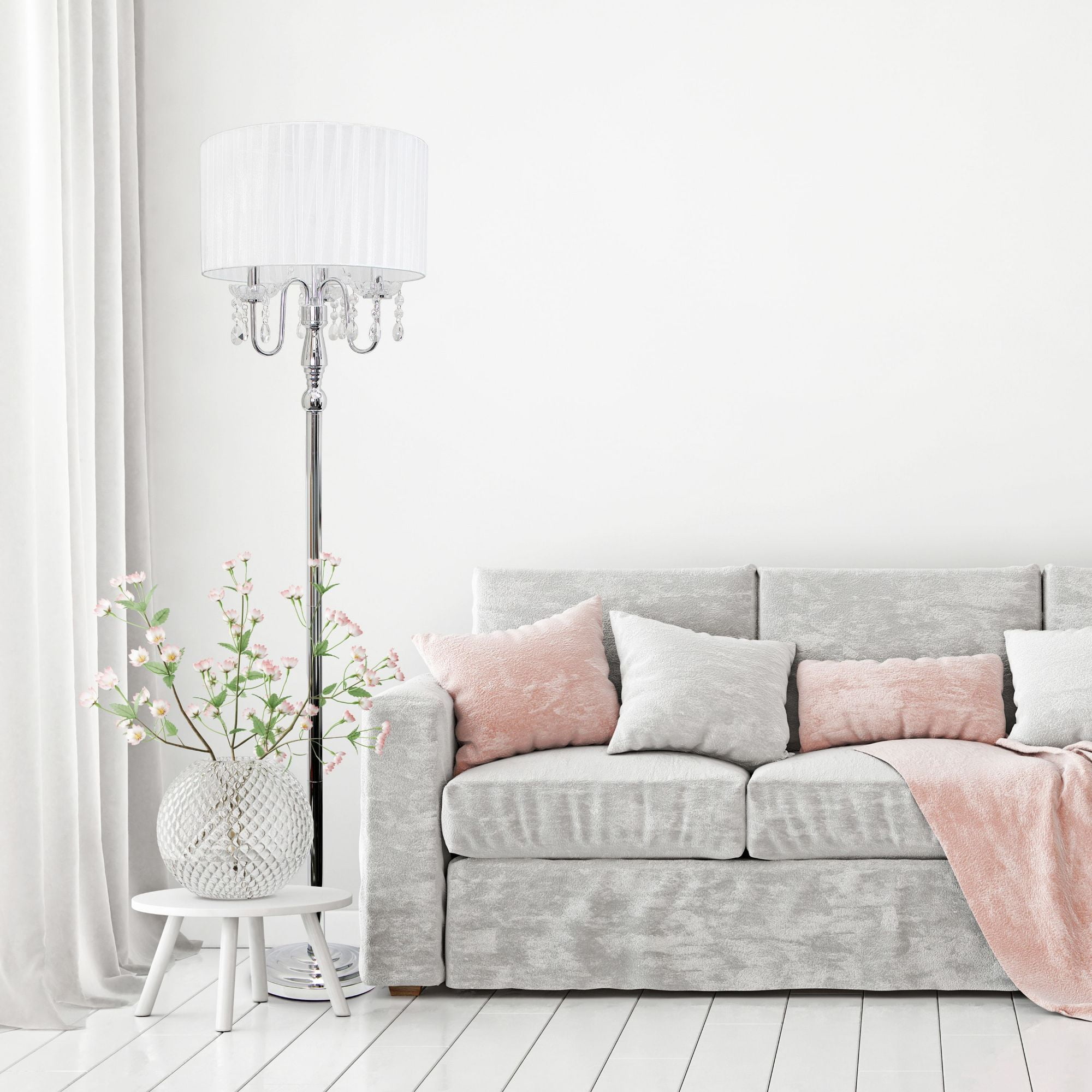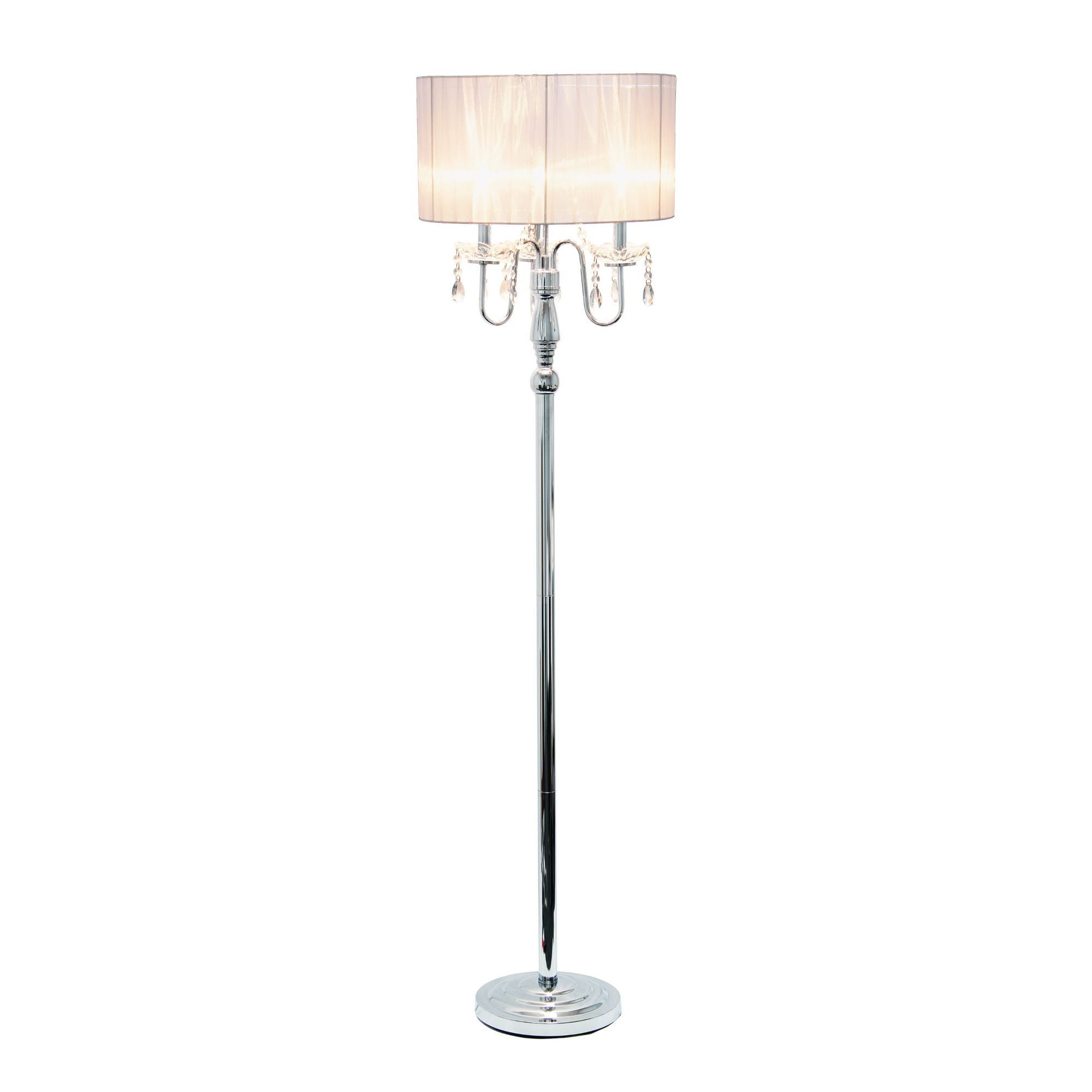 Elegant Designs Trendy Romantic Sheer Shade Floor Lamp with Hanging Crystals