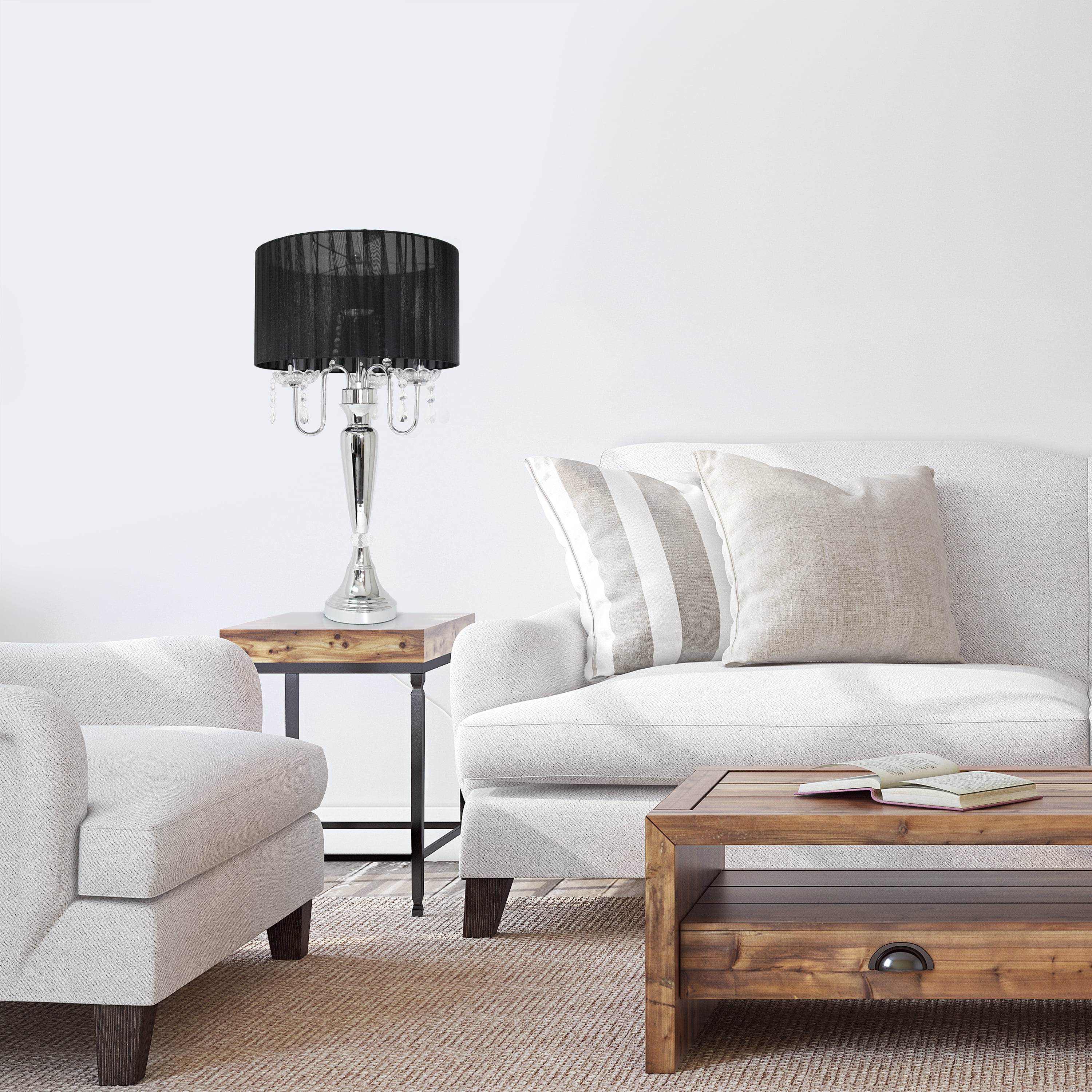Elegant Designs Trendy Romantic Sheer Shade Table Lamp with Hanging Crystals