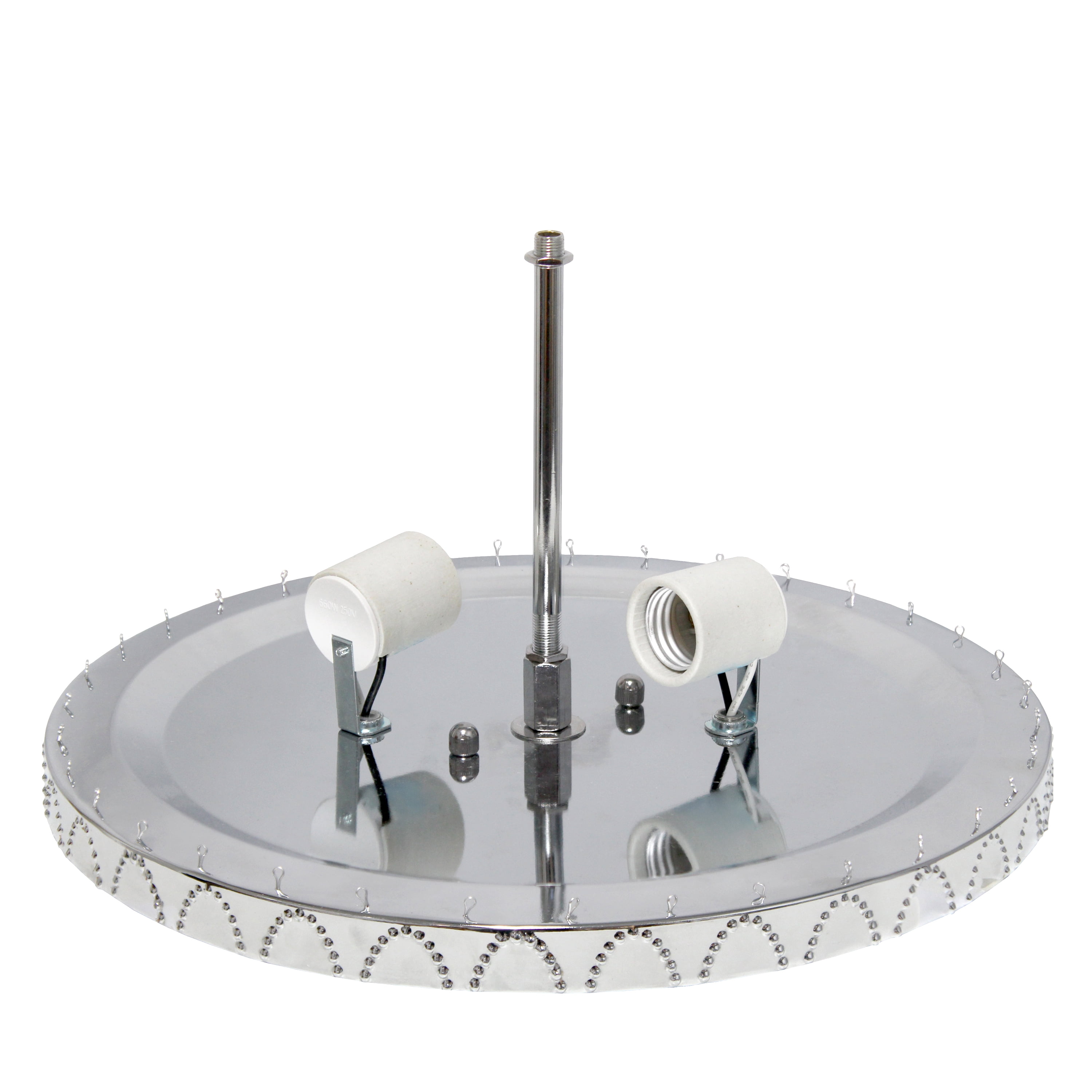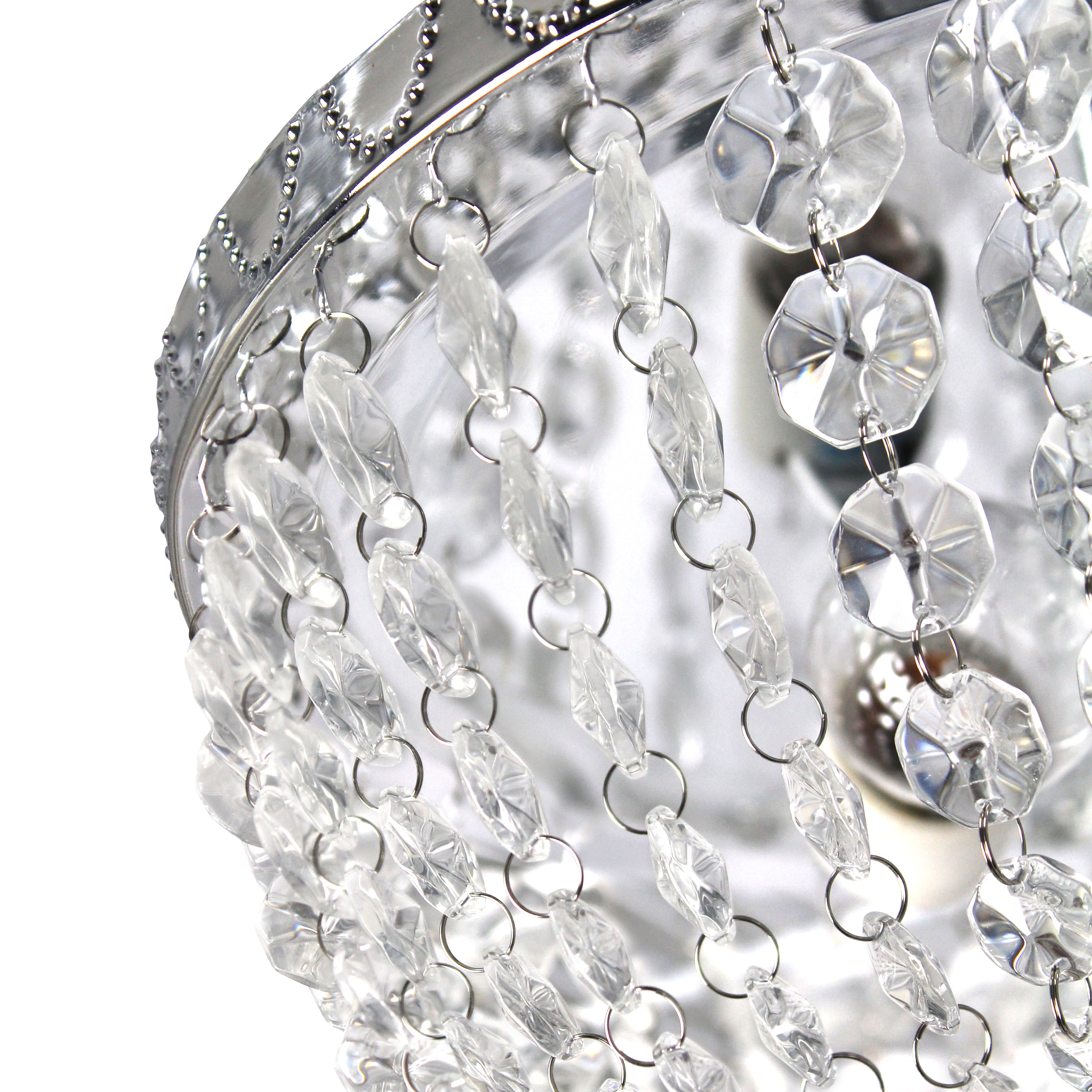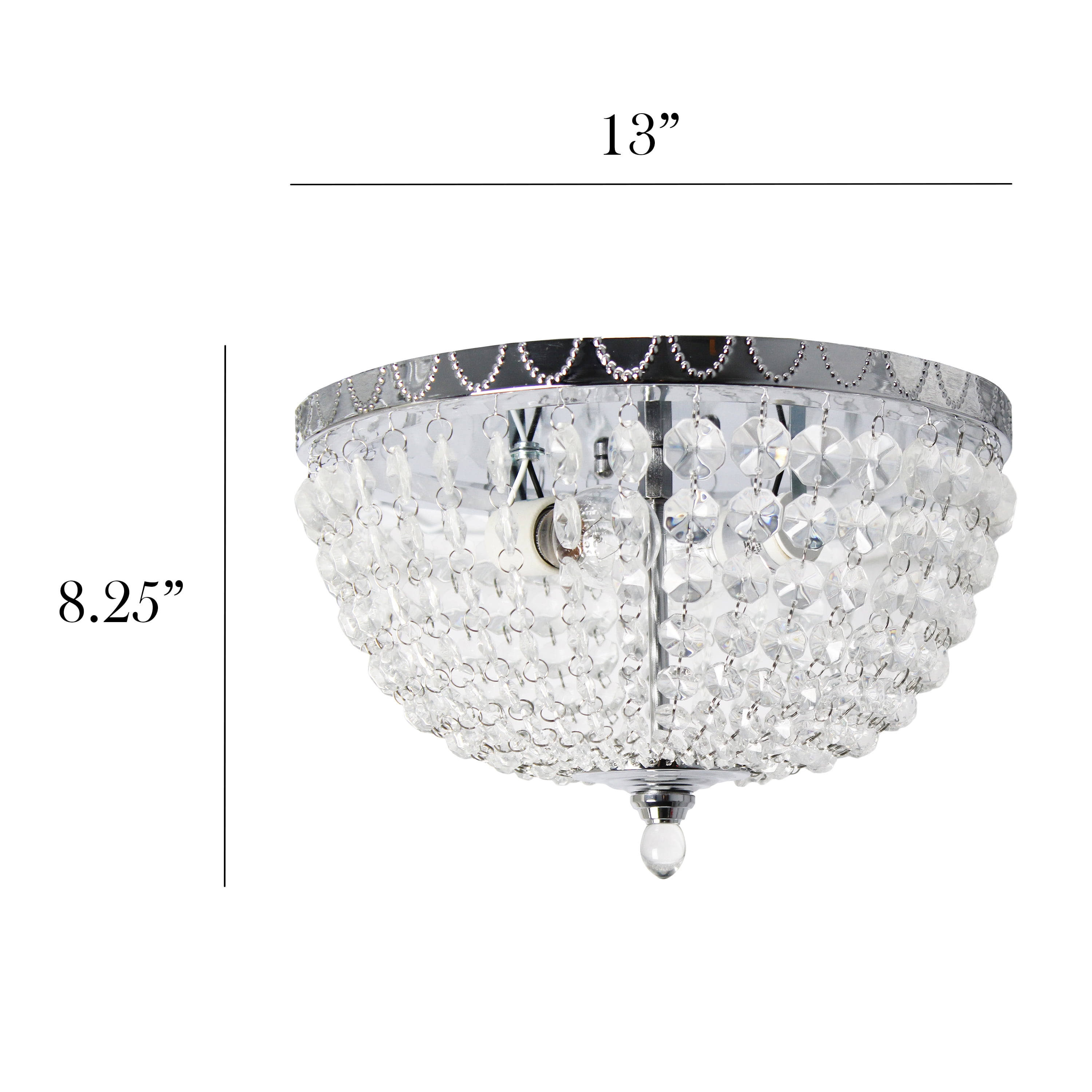 Gorgeous Crystal Rain Drop Shade Flawless Chrome Finish Uses 2 x 40W equivalent Type B Medium Base Bulbs (not included) 13″ Diameter Perfect for living room, dining room, bedroom, office, or foyer.