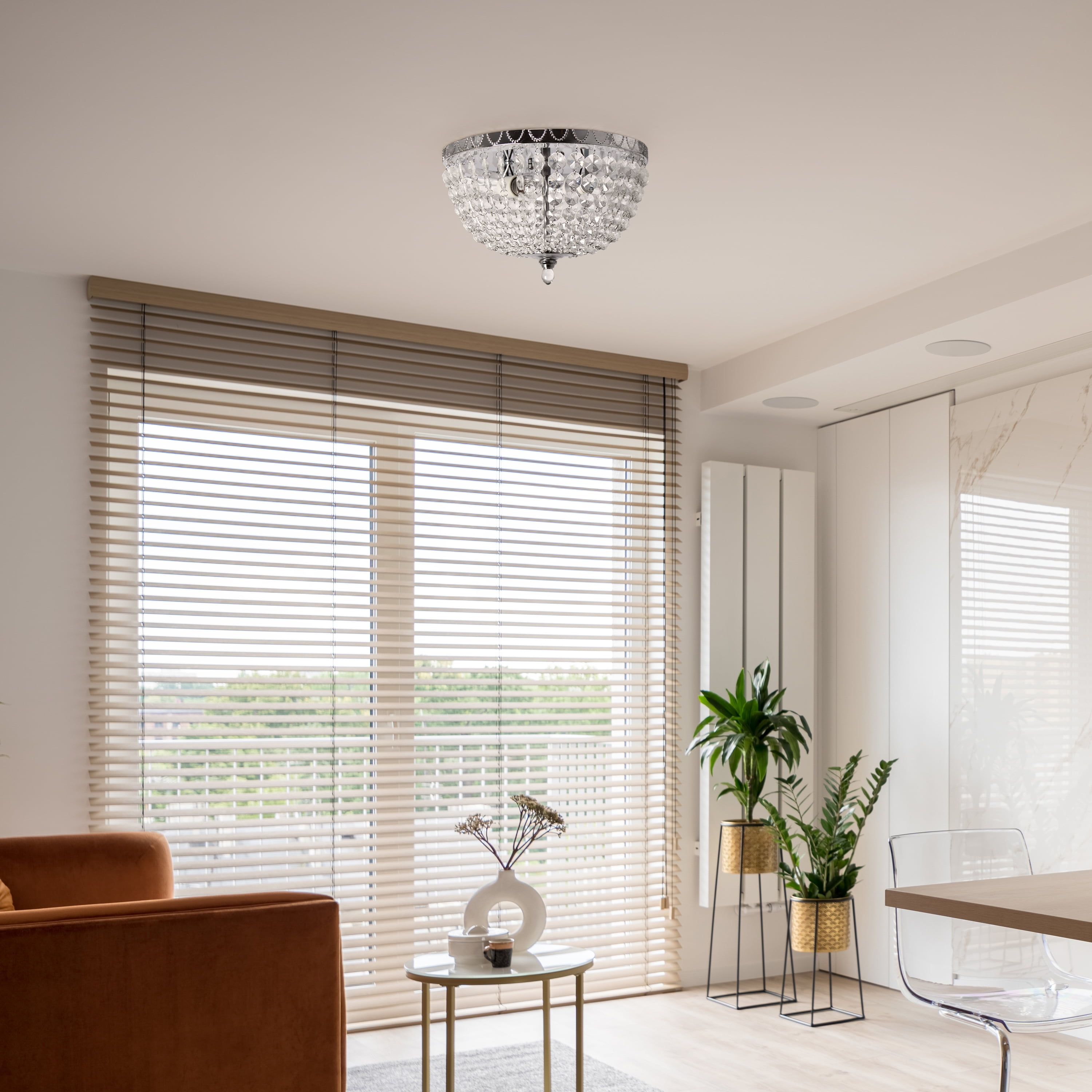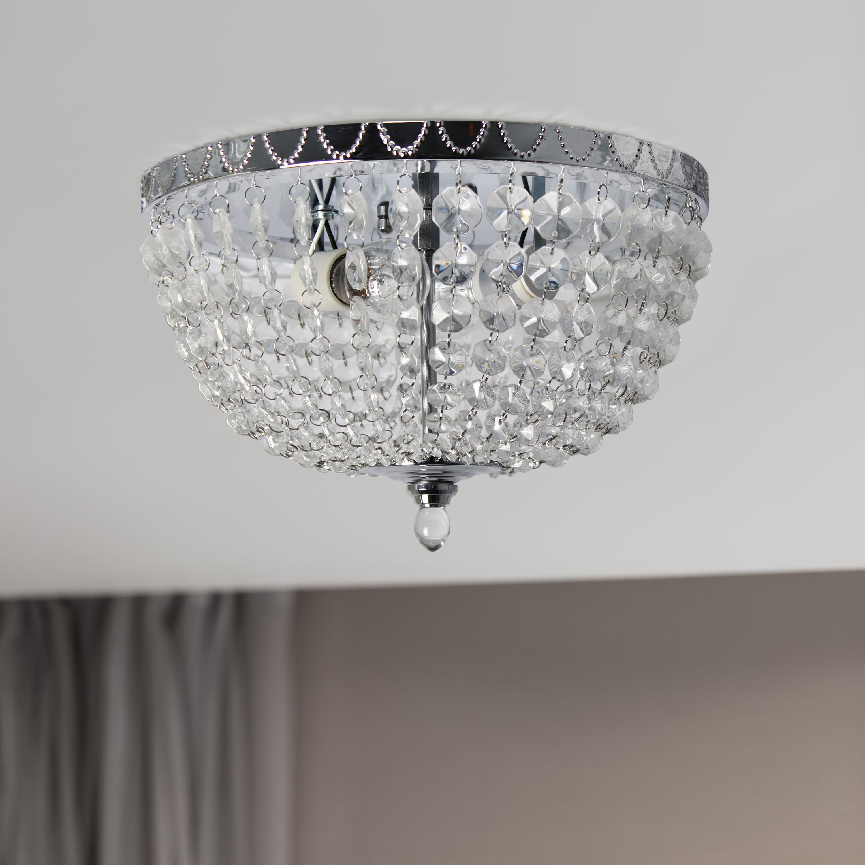Elegant Designs Victoria Crystal Rain Drop Ceiling Light Flushmount – Chrome