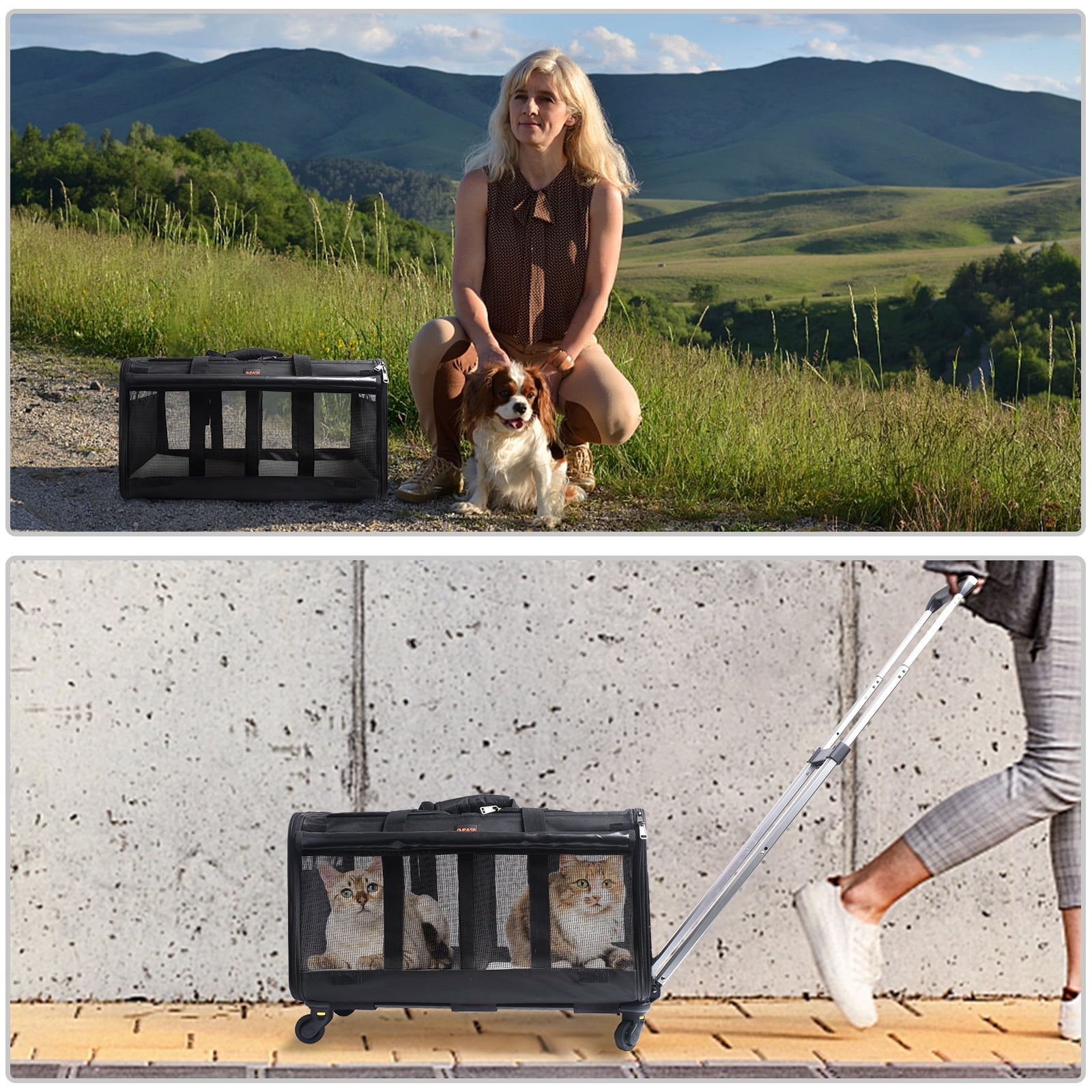 ELEGX Double-Compartment Pet Rolling Carrier with Wheels for 2 Pets,for Up to 35 LBS,Cat Rolling Carrier for 2 Cats,Super Ventilated Design,Ideal for Traveling/Hiking /Camping