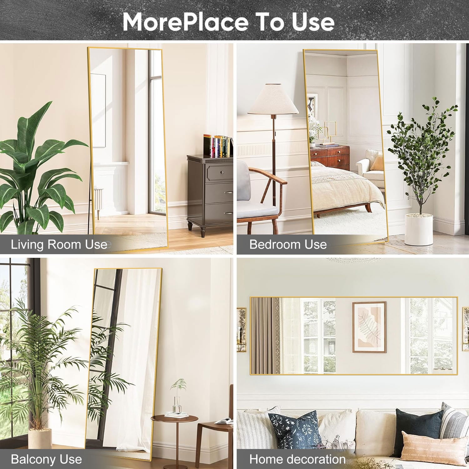 Elemore Home 65″x24″ Full Length Mirror Rectangle Floor Mirrors for Standing Leaning Hanging, Gold