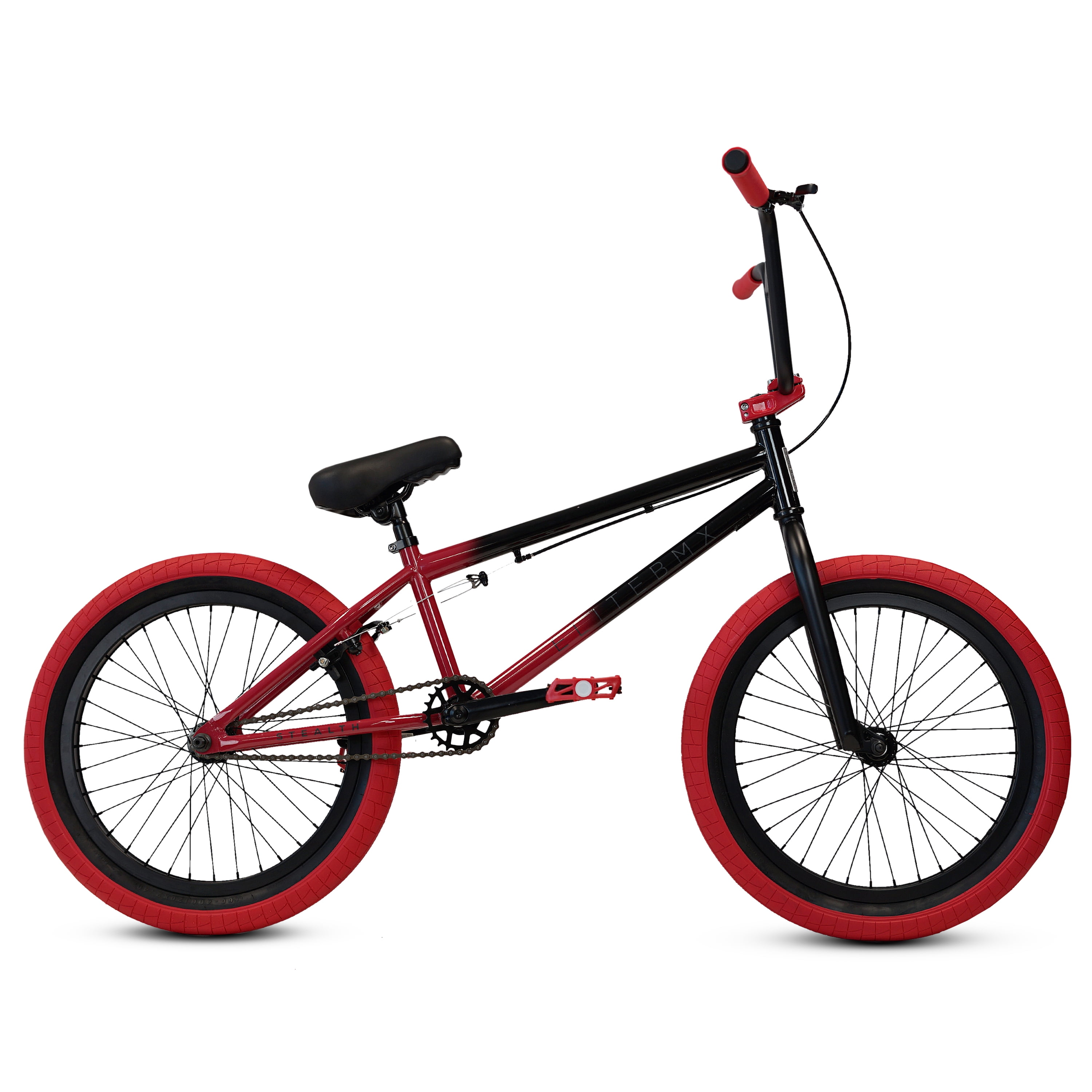 The Elite BMX Bike Stealth 20″ is a great entry-level BMX bike that performs well on the street, dirt, and park. Featuring a durable hi-tensile steel frame, Stealth alloy top-load stem, Chromoly 3-piece cranks, and low-profile 6061-alloy rims, this bike is built to withstand the rigors of BMX riding. With a 25T sprocket and 9T driver, it provides smooth and responsive gearing, while the included pegs add versatility for tricks and stunts. Suitable for riders aged 7 and up, this BMX bike is a reliable choice for those looking to explore the world of BMX.