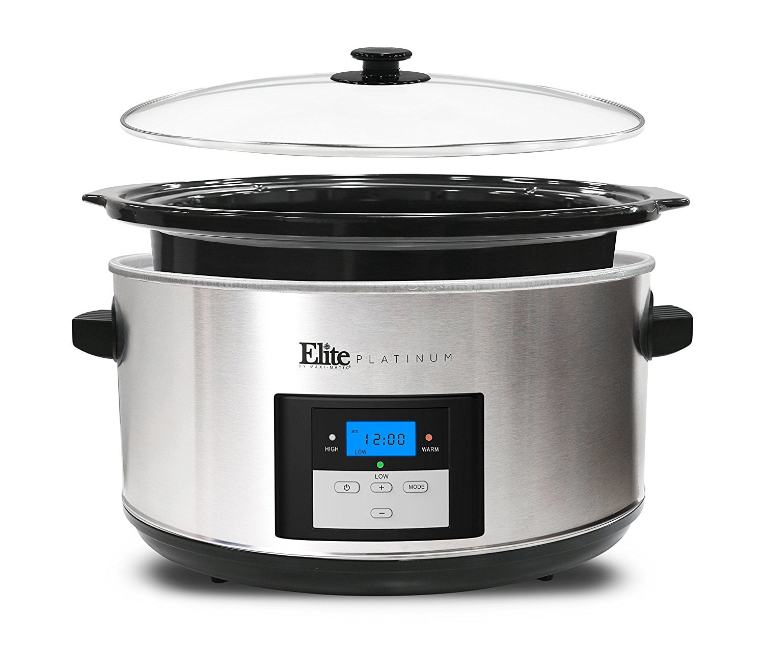 Enjoy home-cooked meals without being tied to your kitchen with the Elite Platinum Digital Slow Cooker in stainless steel. This essential kitchen accessory eliminates oils to create low-fat and nutrient-rich main dishes. Whether you’re making brisket or a pork shoulder roast, dinner will be piping-hot and ready to eat when you return. The easy-to-use digital interface allows you to set the length of cooking time and temperature with the touch of a button. Plus, the removable stoneware pot and tempered glass lid can go right into your dishwasher, which makes for a quick and easy cleanup. Not only is this 280-watt slow cooker UL certified, it also comes with a one-year limited warranty against manufacturer defects. In the unlikely event that it ceases to perform as promised under normal use, contact us for repair or a replacement. Save time and money on meal preparation with the Elite Platinum Digital Slow Cooker in stainless steel.