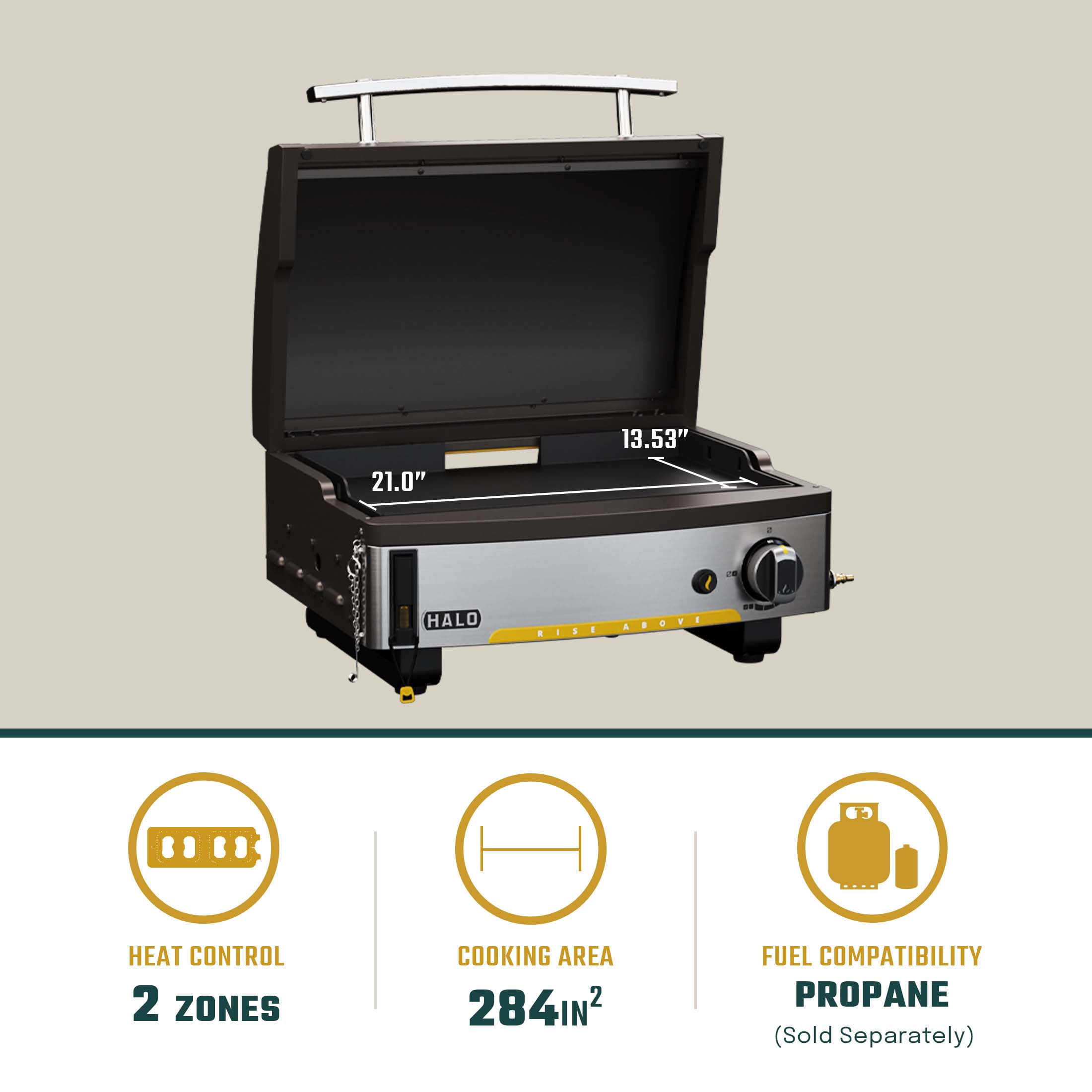 HALO Elite1B 1-Burner Outdoor Propane Gas Griddle with 2-Zone Cooking and Compact Design