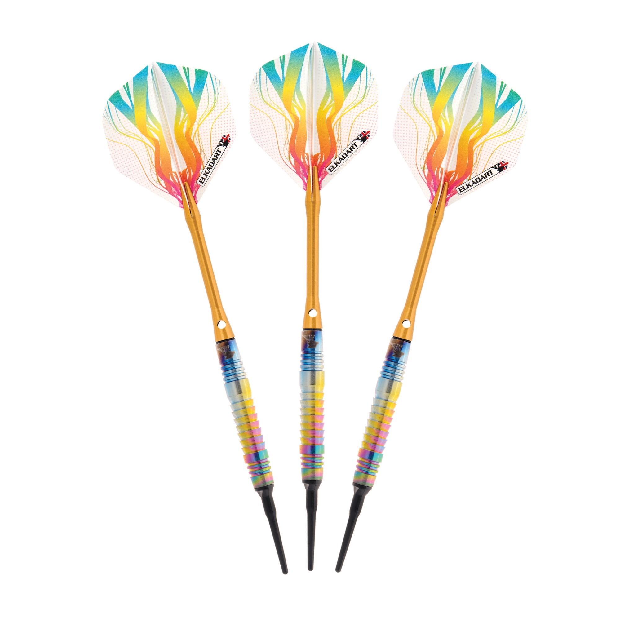 Elkadart Rainbow 90% Tungsten Soft Tip Darts Multi Color Titanium Coating 16 Grams