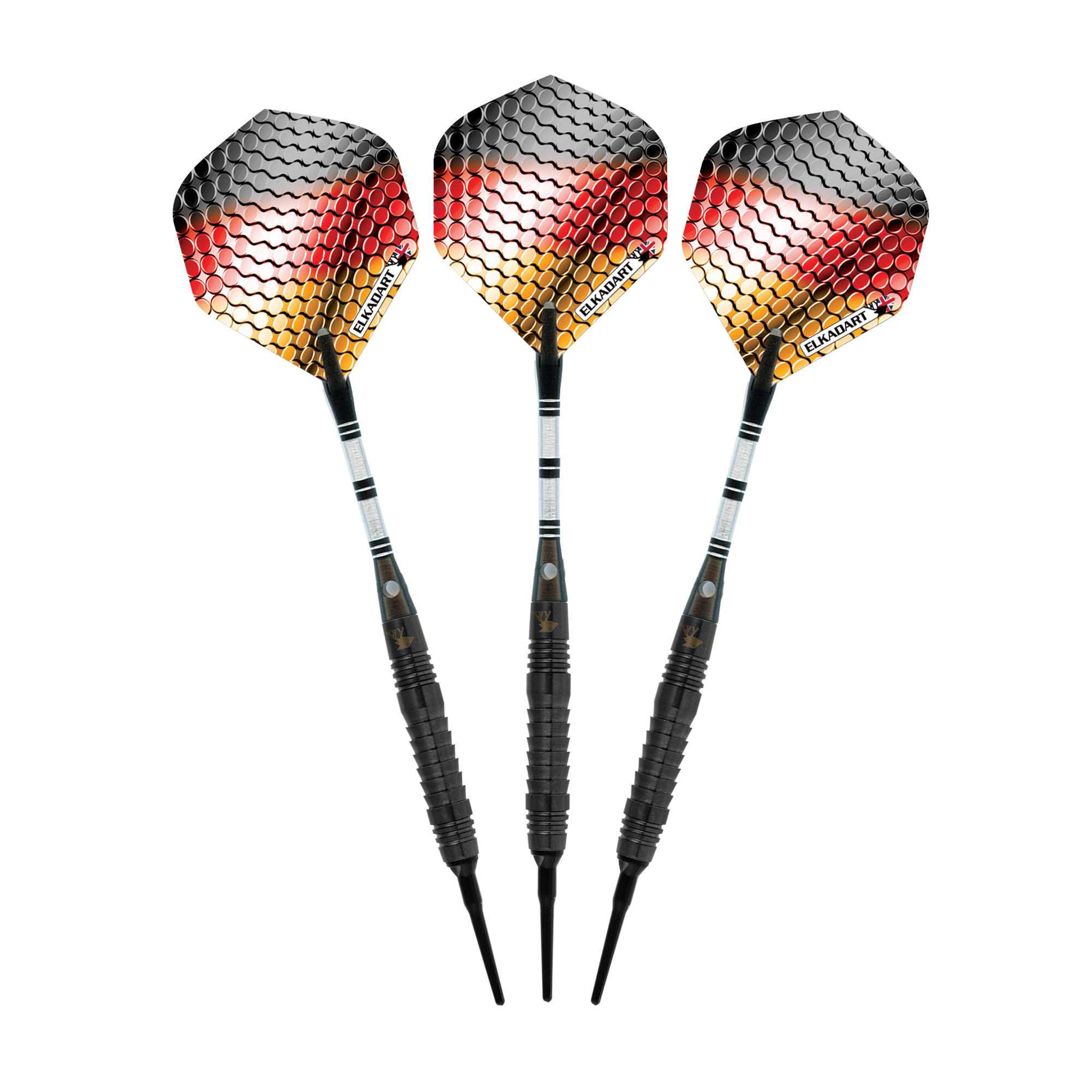 Your game will take on the strength of the legendary giants when you bring the Elkadart Titanium Soft Tip Darts to play. Designed for use with either electronic dart boards or most sisal dart boards, these darts are packed with features starting with the barrel, fashioned from 90% Tungsten and 10% Nickel. Tungsten is a very dense metal, able to create slimmer darts with the same weight as lighter metals; this allows for tighter shot groupings without sacrificing control, increasing your scores. Tungsten is a sign of quality and durability as well because of its density. A higher tungsten content will produce a slimmer dart profile than one with less. More tungsten in the dart increases the price as tungsten is a rare metal and its density takes more effort to machine. The increased price gives a higher quality barrel and can improve performance, increasing scores. Each precision machined barrel enjoys deep recessed rings or razorback ridges, allowing your grip to remain consistent throw after throw. The Titanium Darts feature tough, 100 micron flights with precision geometric graphics. The extra hardiness these flights feature means that you won’t need to replace them as often – they’ll stand up to the toughest throws. Finally, each dart is precision machined for maximum aerodynamics and a sleek, smooth look and features a stylish signature Titanium finish found in no other dart. Each set includes three 100 micron flights, three ringed aluminum shafts, three 2BA Tufflex II Tips, and slim dart case. Made with pride in England.