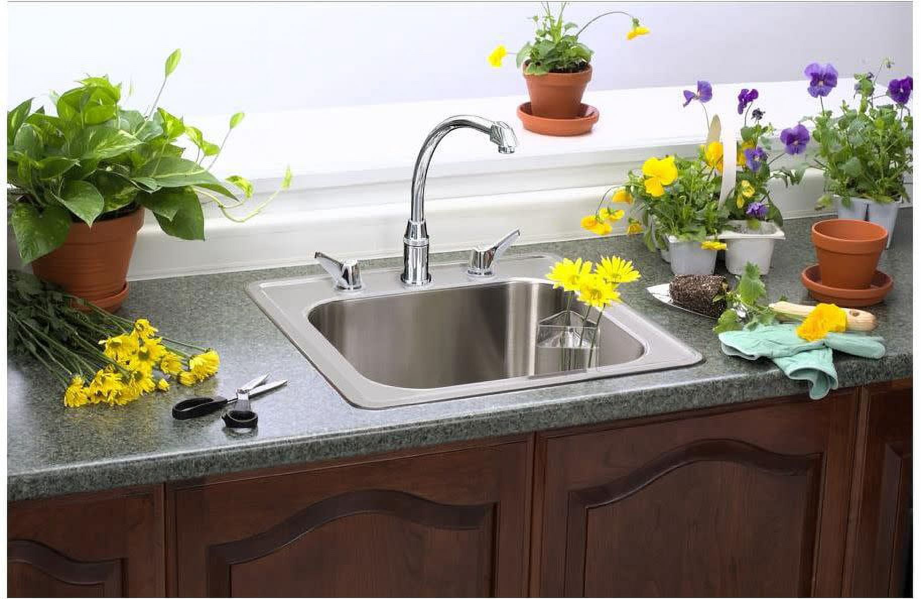 DROP-IN INSTALLATION: Sink is designed for drop-in installation to make the sink a focal point of your room.,SINGLE BOWL: Bowl gives you uninterrupted space for household tasks.,20-GAUGE STAINLESS STEEL: Highest grade 20-gauge thickness and Type 304 stainless steel for everyday lasting durability, performance and finish.,QUIET: Sound-deadening pad(s) minimizes sound and vibration for a quieter time at the sink.,U-CHANNEL INSTALLATION: Mounting clips placed inside the channel before installation mean less time under the sink for an easier install.,CENTER DRAIN: Drain is conveniently placed in the center of the sink.,EXTRA DEEP BOWLS: High-capacity bowls offer more room inside for washing larger items and other household tasks.,DRAIN OPENING: Sink drain opening measures 3-1/2″.,CABINET SIZE: Minimum cabinet size for this sink is 24″.,: This Elkay product is proudly .