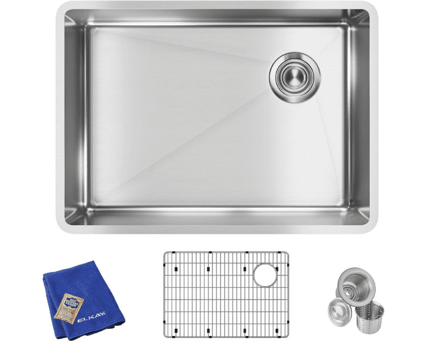 Elkay Crosstown Stainless Steel 25-1/2″ x 18-1/2″ x 9″, Single Bowl Undermount Sink Kit