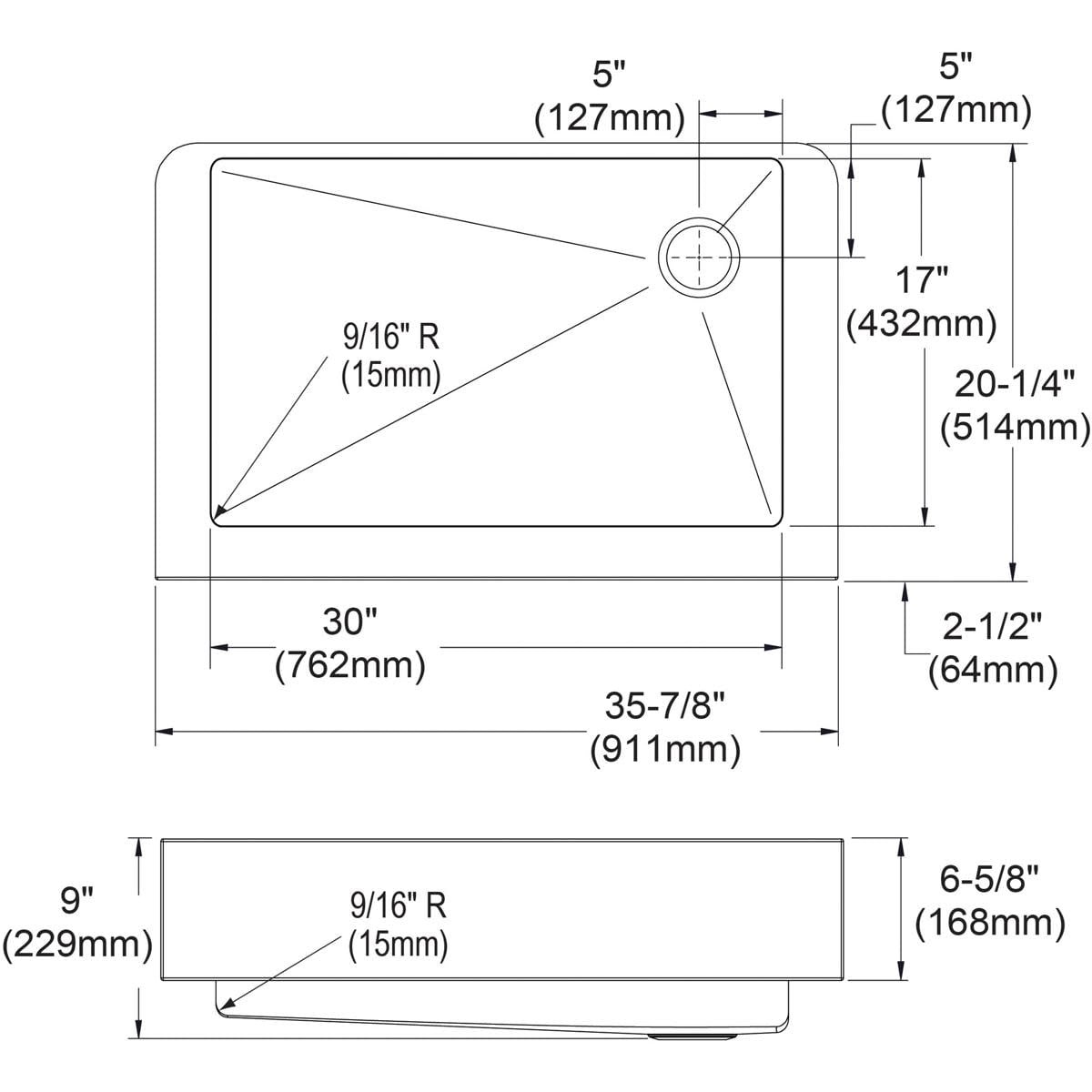 Elkay Crosstown is the ultimate mix of beauty, function and modern design. Straight sidewalls, a flat bottom and tight corners provide more space inside the sink for stacking and washing dishes. The striking geometric aesthetic has universal appeal and makes an impact in any space.FARMHOUSE DESIGN The sink material is extended to the front panel of the sink, adding a stylish design element to your kitchen.SINGLE BOWL Bowl gives you uninterrupted space for washing and stacking dishes or other household tasks.18-GAUGE STAINLESS STEEL Highest quality 18-gauge thickness and Type 304 stainless steel for lasting durability, performance and lustrous beauty.QUIET Sound-deadening pad s minimizes sound and vibration for a quieter time at the sink.TIGHT CORNERS Fresh, geometric design offers straight sidewalls and a flat bottom for a modern look and more usable space easy to clean.OFFSET DRAIN Drain placement provides more usable space on the bottom of the sink and in the cabinet below.EXTRA DEEP BOWLS High-capacity bowls offer more room inside for stacking dishes, filling stockpots, and handling large baking sheets and roasters.CROSS BREAKS Creased accent lines in the sink bottom deliver superior drainage and give the sink a professional appearance.DRAIN OPENING Sink drain opening measures 3-1 2 .CABINET SIZE Minimum cabinet size for this sink is 36 .
