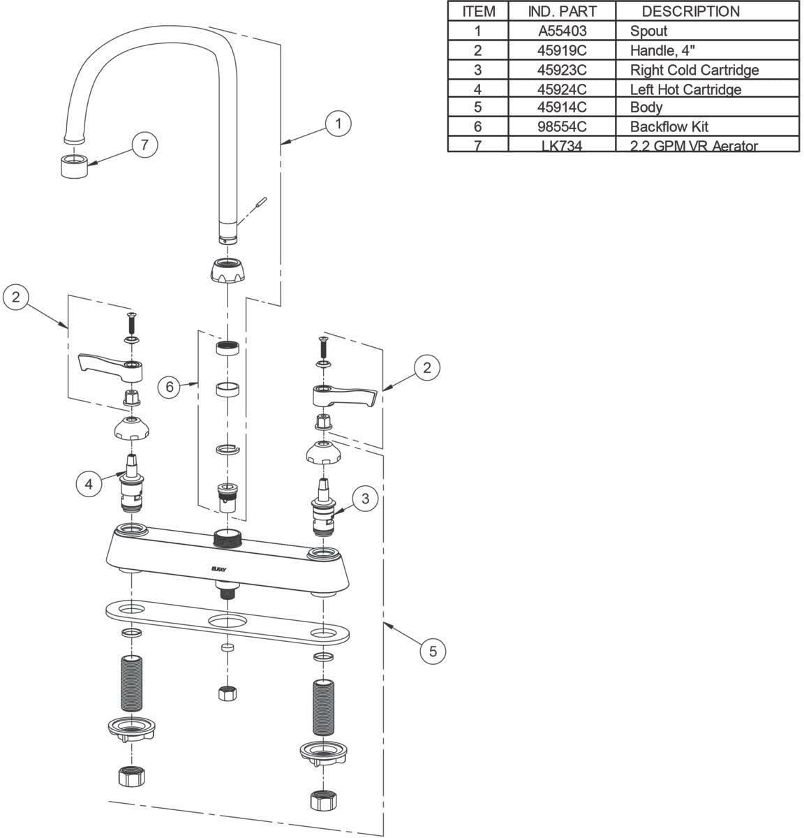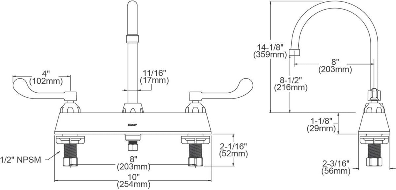 Elkay, LK810GN08T4 , DECK MNT CONCEAL WS, GN 8IN SPT, 1PC WRIST BLD HNDL, 4IN, Faucets and Sink Accessories