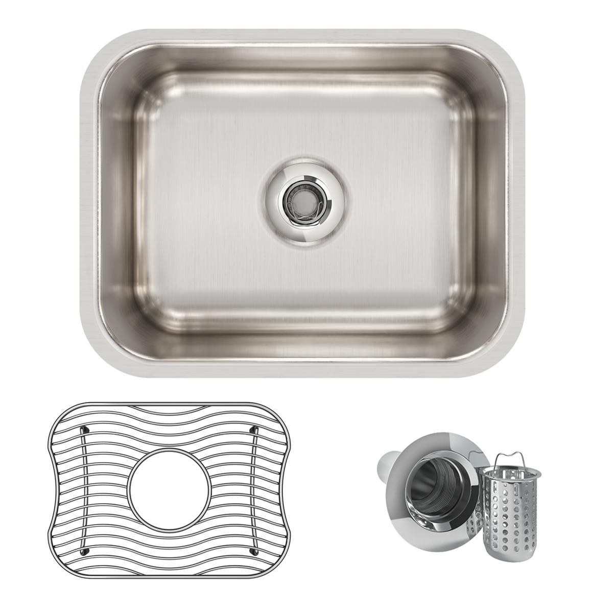 Features: REPAIRABLE FINISH: Finish is scratch resistant to heavy-duty use. Deep scratches are repairable. Lustrous grain reflects light evenly for high shine. UNDERMOUNT INSTALLATION: Sink is installed beneath the countertop creating a seamless appearance between the sink and the countertop. 18-GAUGE STAINLESS STEEL: Highest quality 18-gauge thickness and Type 304 stainless steel for lasting durability, performance and lustrous beauty. QUIET: Sound-deadening pad(s) minimizes sound and vibration for a quieter time at the sink. DRAIN OPENING: Sink drain opening measures 2″. CABINET SIZE: Minimum cabinet size for this sink is 18″. KIT INCLUDES: ELUH129 sink, LKWBG1209SS bottom grid, LK36 drain; save the time of having to purchase each item separately. Specifications: Manufacturer Warranty: 1 Year Limited Warranty Installation:Undermount, Sink Kits Finish:Lustrous Satin