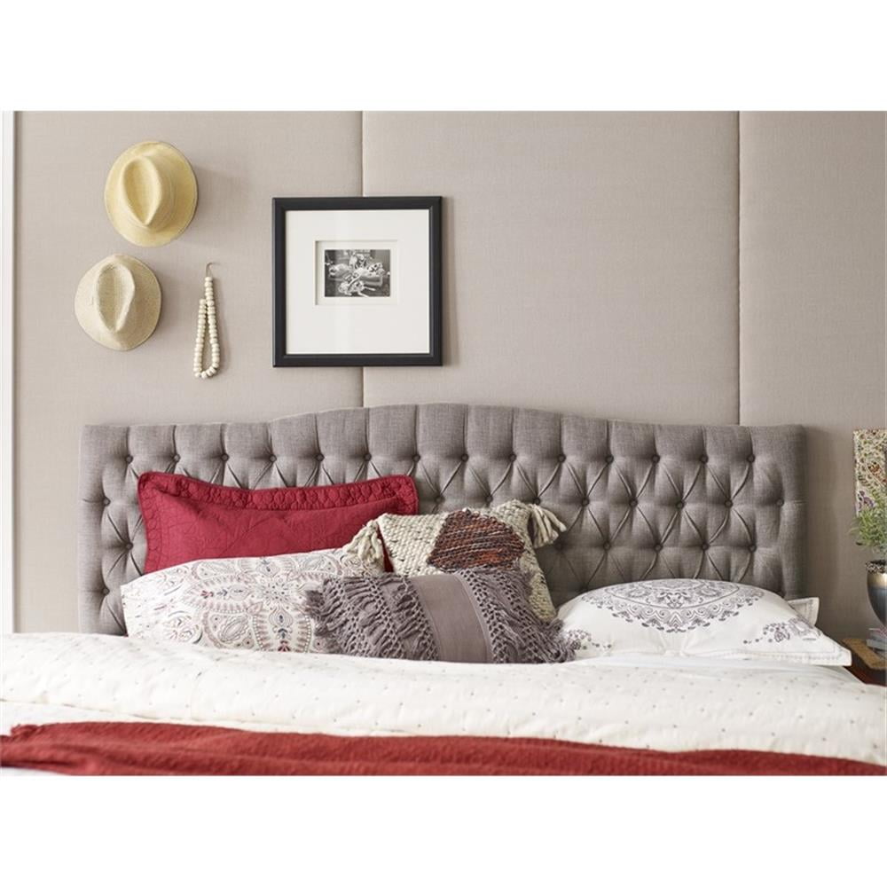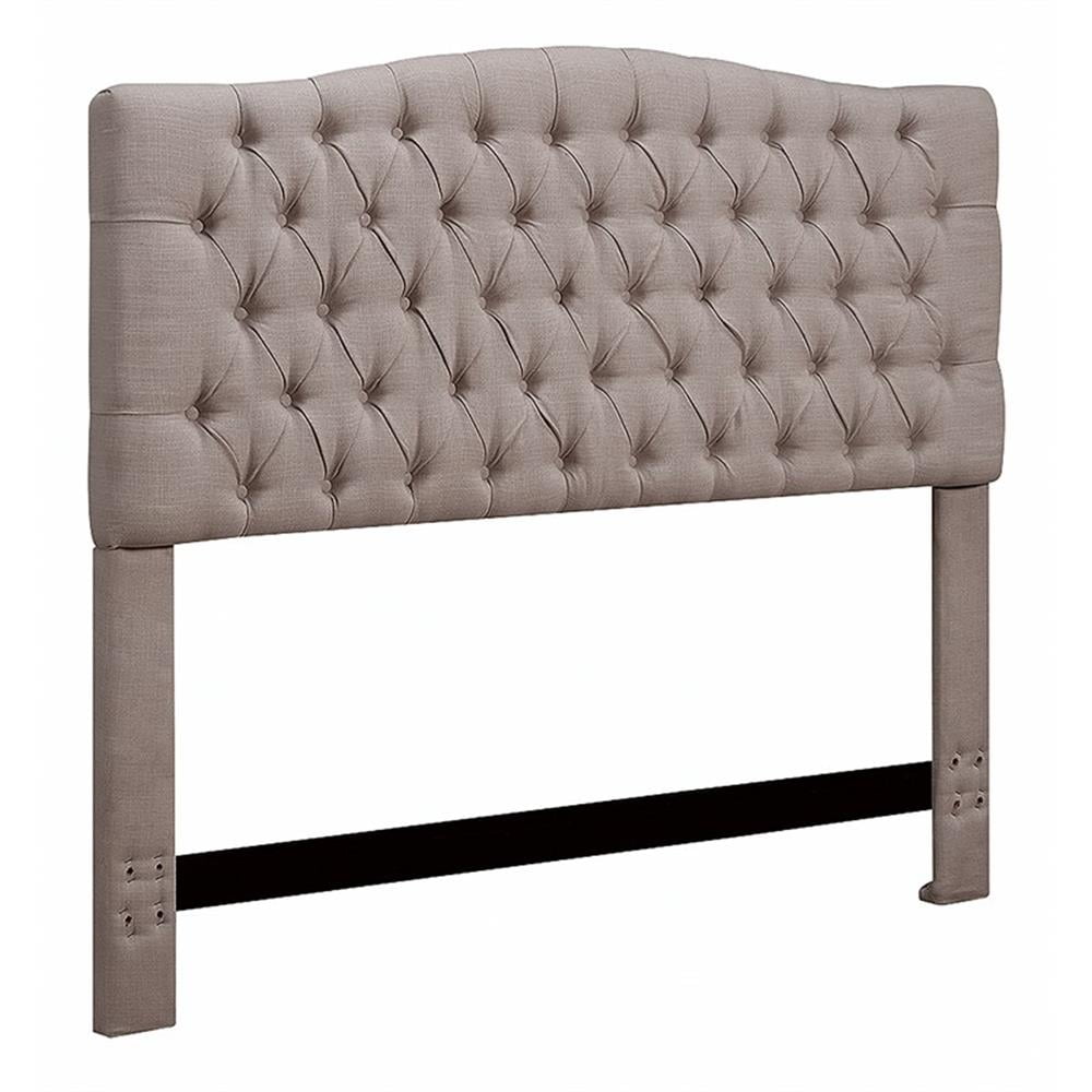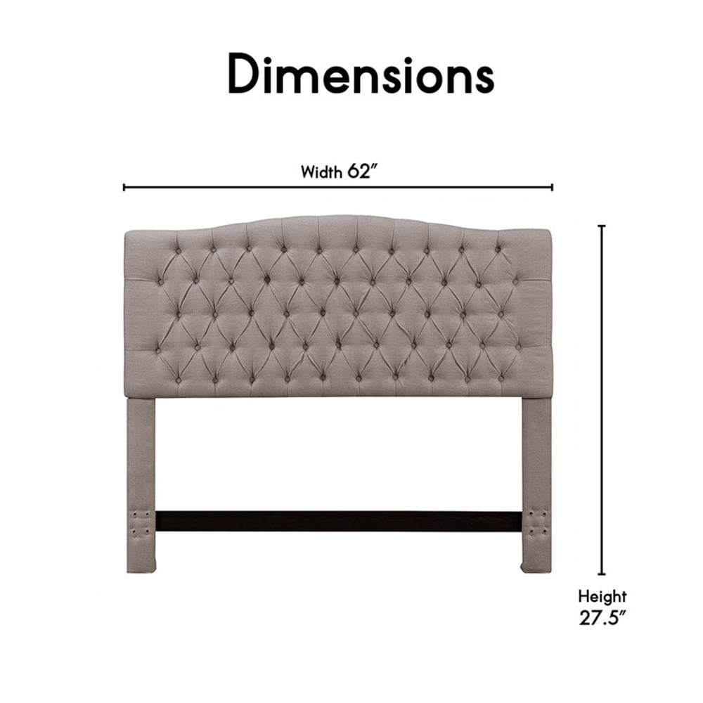 This plush tufted headboard anchors your bedroom in royal style. Designed with both classic and contemporary spaces in mind, the tufted headboard attaches easily to almost any king or queen size bed frame. Available in a variety of colors and fabrics, the unique design of the plush upholstery is every bit as comfortable as it is posh, and it brings a touch of Parisian glam to your bedroom. Pair your easy-chic new headboard with a set of vintage-inspired nightstands and a luxuriously upholstered bench to create the attractive and eclectic bedroom of your dreams. Constructed from sturdy wood and high-quality fabric, this fabric upholstered headboard features stylish button-tufted tailoring, a wide frame, and a subtle top curve for a luxe look. Features: Give your boring bedroom a luxe refresh with a tufted upholstered headboard that combines style with practical comfort. Button tufted stitching and soft coloring create sophisticated glamour that elevates your bedroom. The sturdy, hardwood frame and high-quality upholstery ensure durability over the long term. Soft, padded headboard provides a comfortable lounging spot when you want to watch TV or read a good book. Assemble your tufted headboard in minutes using the easy-to-follow instructions. Specifications: Product Weight: 36 lbs