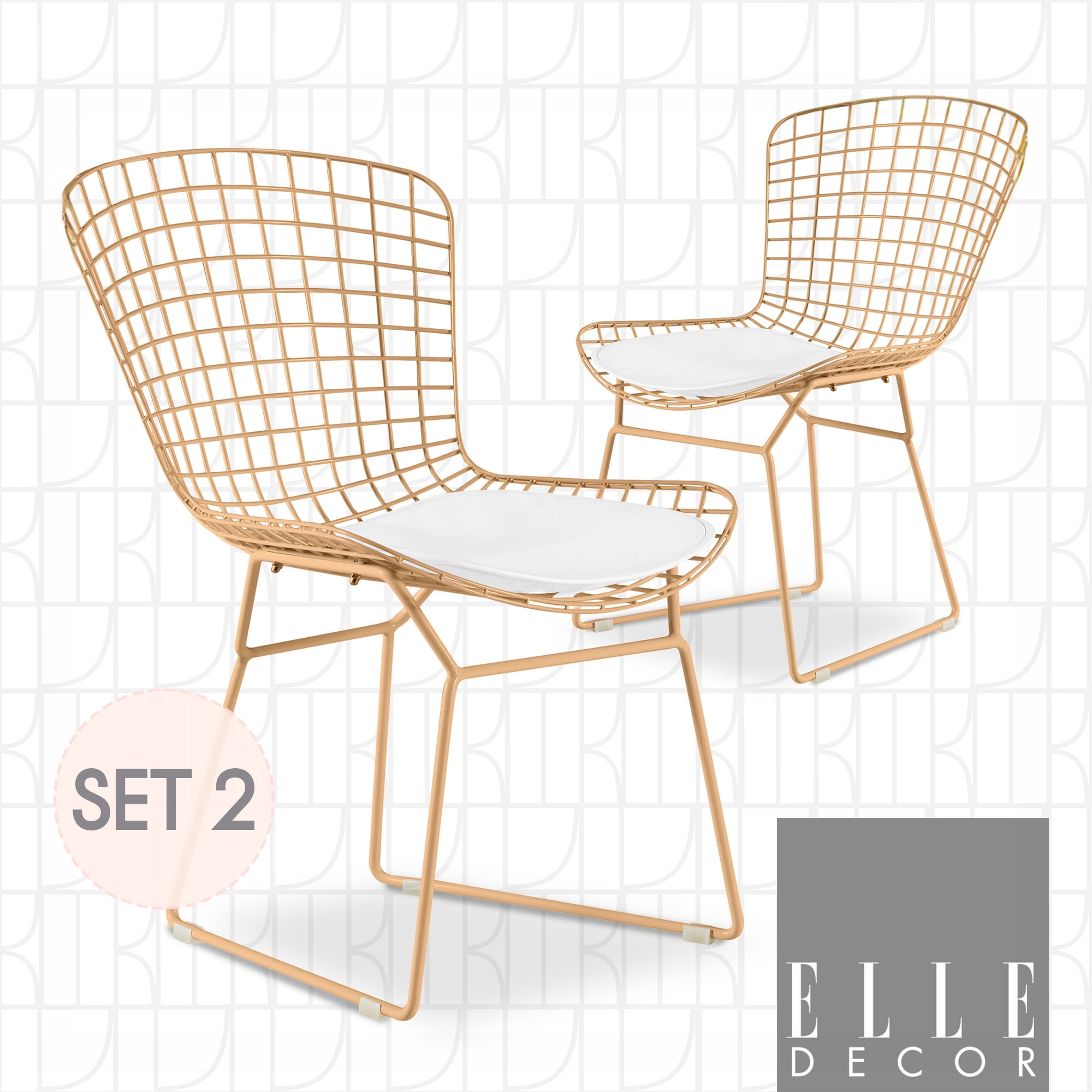 Classic midcentury design meets contemporary edge in this bold metal chair with a geometric grid back. Iron and steel construction is made tough to last. The lattice wire grid back creates a supportive surface for your comfort. Sturdy yet lightweight, this chair is easily portable when redecorating or multifunctional use. These chairs come in a set of two.