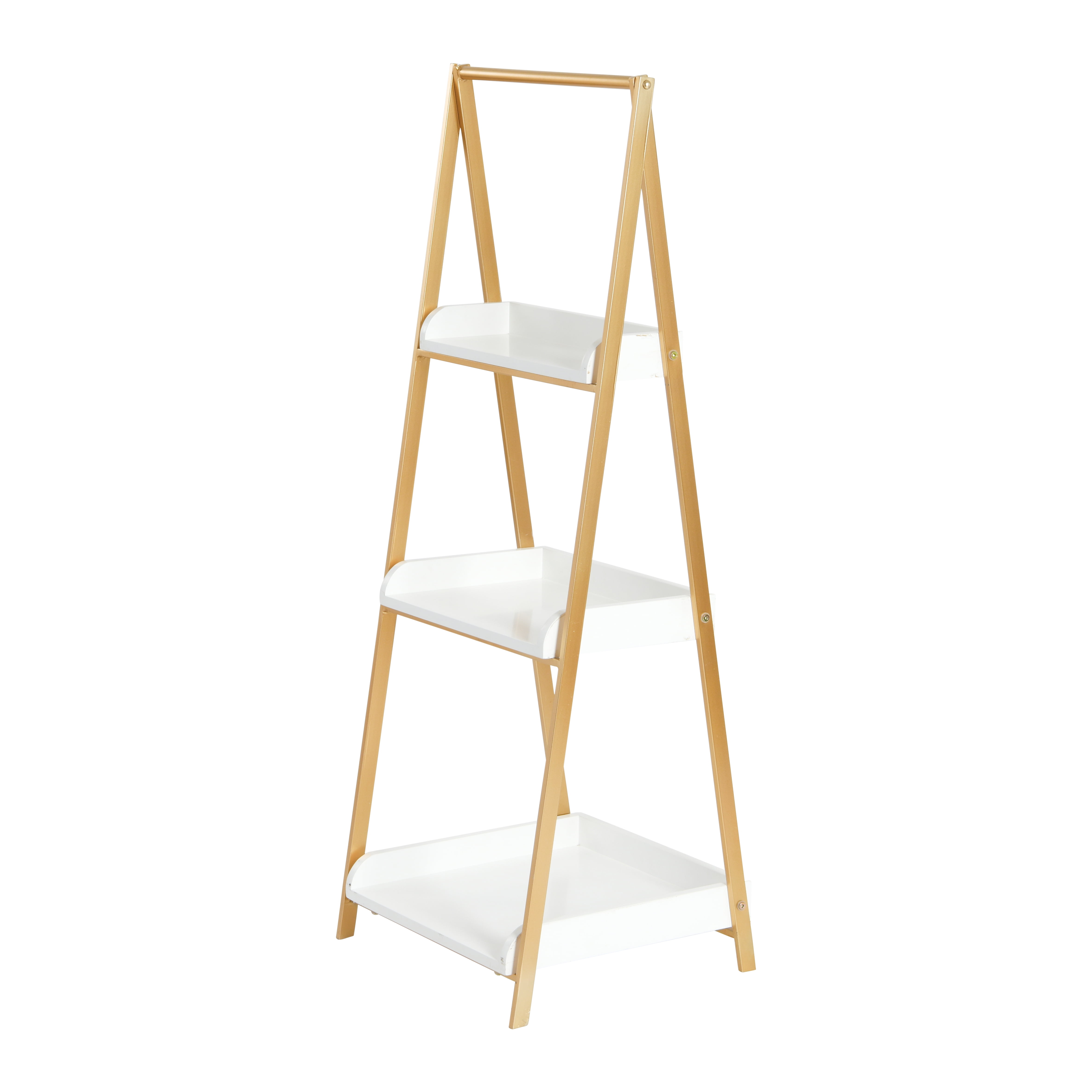 Ember Interiors 3 Tier Iron and Wood A Frame Shelf in White and Gold Finish