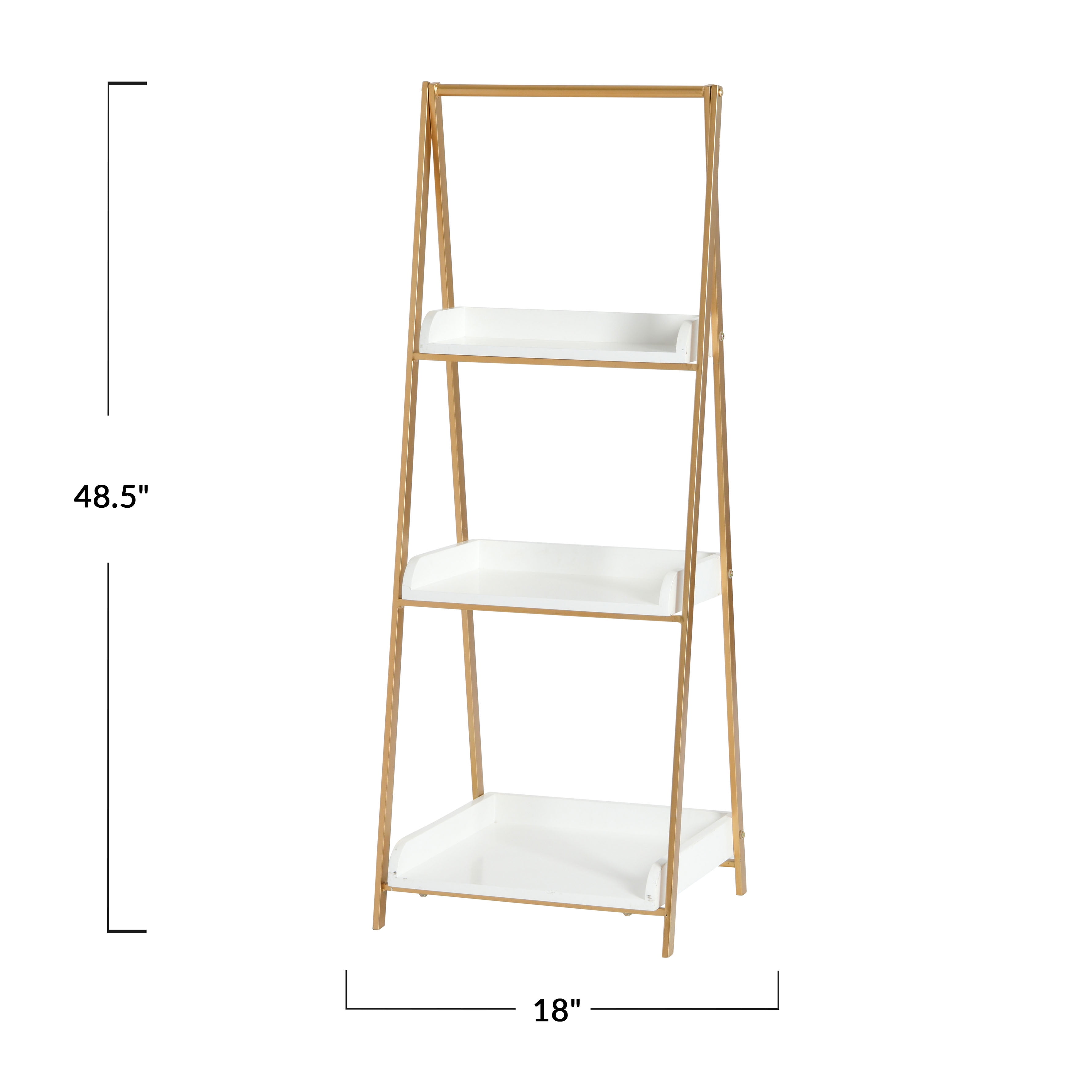 A-Frame ladder shelf offers a unique design that suits any style dÃécor from industrial to modern and everywhere in between This versatile shelf can be used as a bookcase, plant or flower stand or even just as an extra storage rack in narrow bathrooms, bedrooms, living rooms, home offices, or kitchens Features 3 shelves perfect for displaying all your favorite decorative items in a clean and organized way