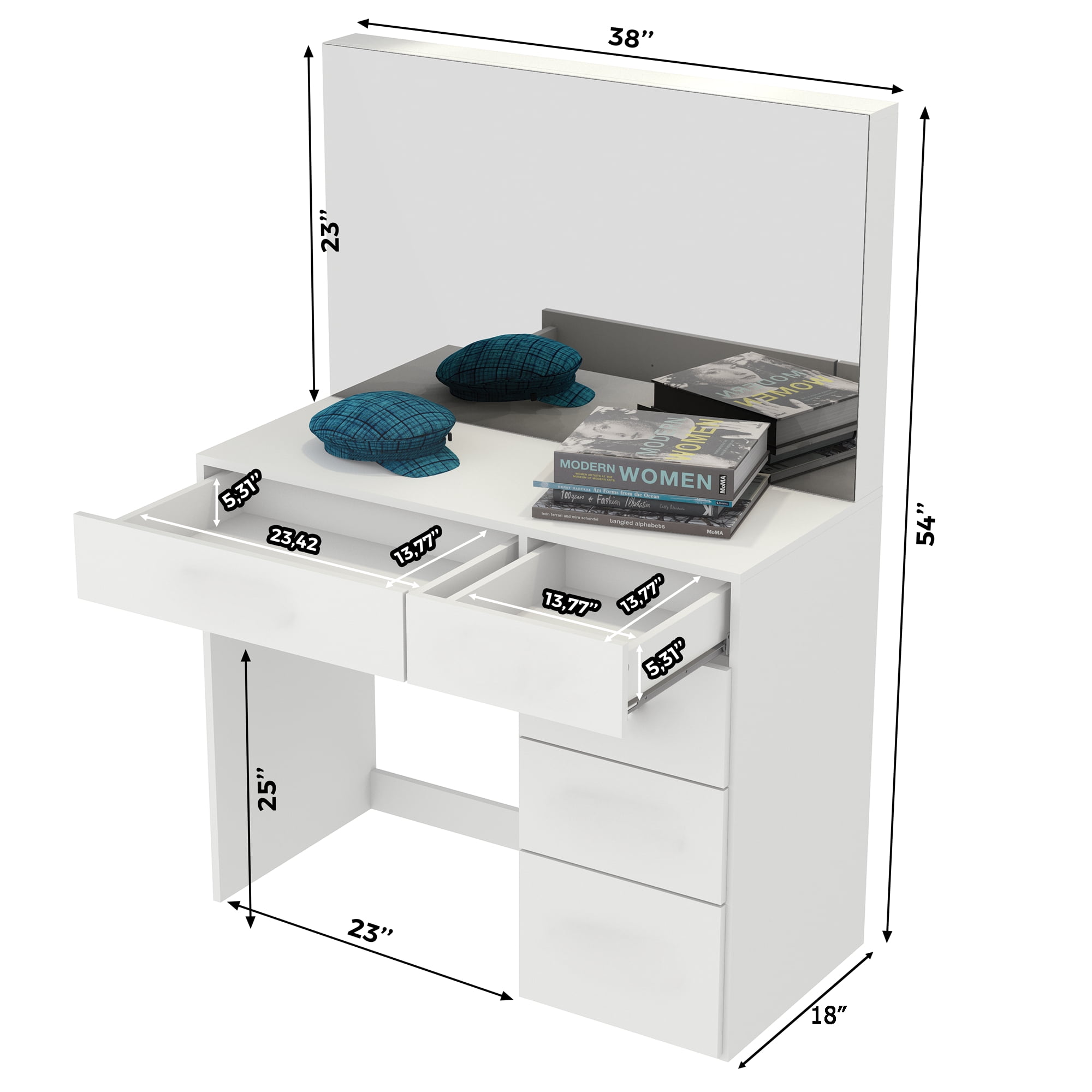 Makeup Vanity Table with Charging Station: This makeup table comes with a charging station add-on with 2 USB ports, making it very convenient to charge your phone, tablet, or other mobile devices. Lighted Mirror: Makeup vanity with lights bulbs add-on that will give a sense of glamor and style. These glam bulbs create the perfect lighting for applying makeup and hairstyling at your dressing table. Plenty of Storage Capacity: This makeup desk features 5 drawers to easily organize all your makeup essentials and jewelry. On the top surface, there is still more than enough space on the table. Small Vanity : This vanity table is an ideal addition to your bedroom or bathroom. This dresser with mirror, and offers generous leg space underneath the table. Customer Support: We will provide professional customer service to every customer before and after purchase. If you have any problems, please feel free to contact us by e-mail or phone call, and we will reply to give you a satisfactory solution.