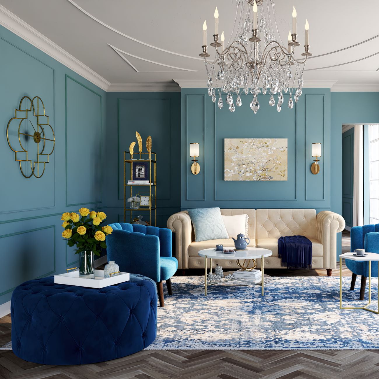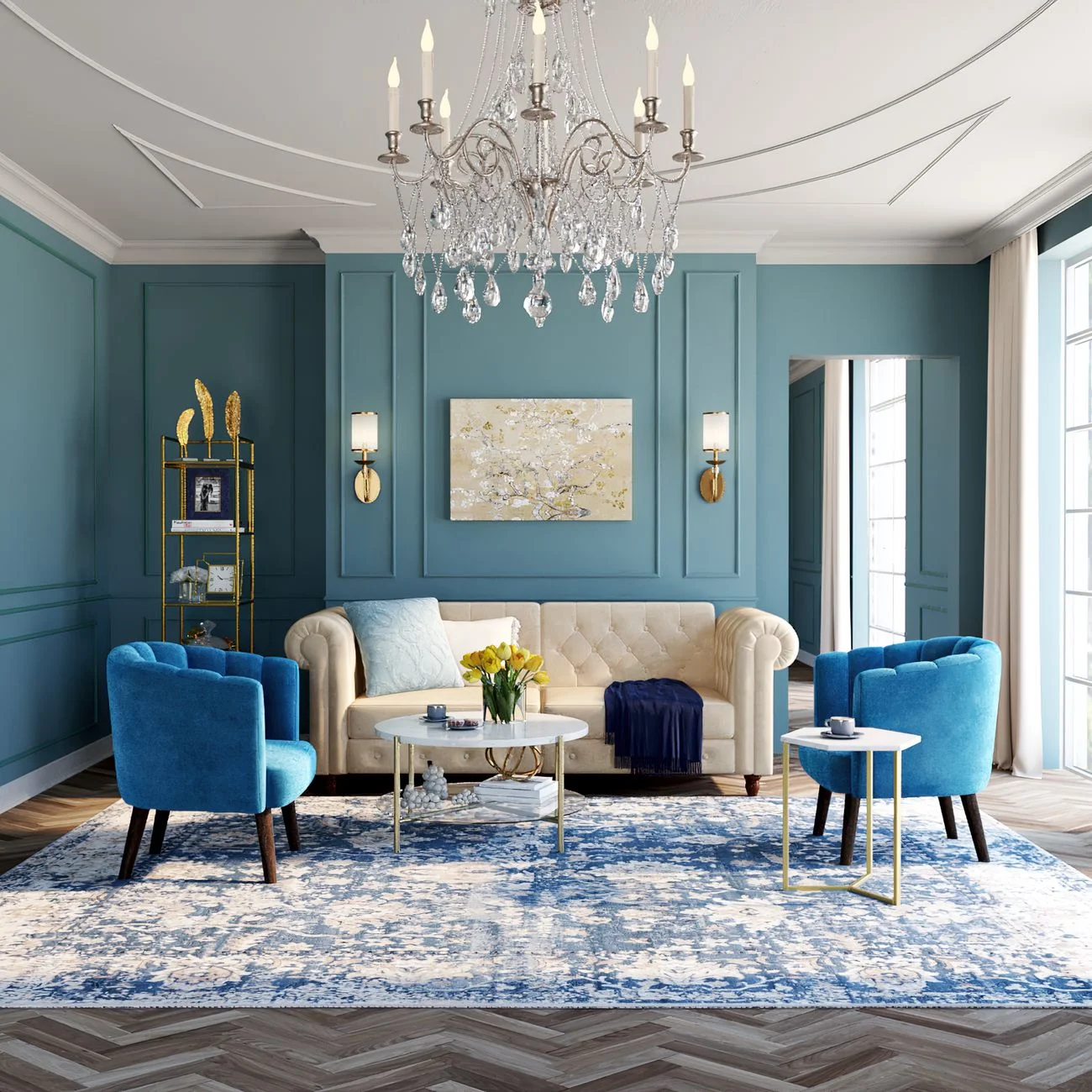 Ember Interiors Modern Wood Nesting Tables, Faux White Marble/Gold, Set of 3