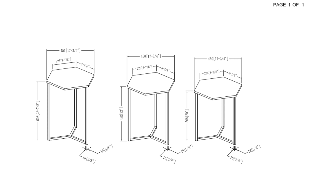 Ember Interiors Modern Wood Nesting Tables, Faux White Marble/Gold, Set of 3: Captivating combination of modern, transitional, and glam design styles Each table boasts a unique hexagon-shaped faux marble tabletop and a metal frame with a Y-shaped base in a golden finish Set includes three tables of varying sizes Display together or separately Ships ready-to-assemble with step-by-step instructions Large table dimensions: 24″ H x 14″ W x 16″ L Medium table dimensions: 22″ H x 14″ W x 16″ L Small table dimensions: 20″ H x 14″ W x 16″ L Made of metal and durable laminate