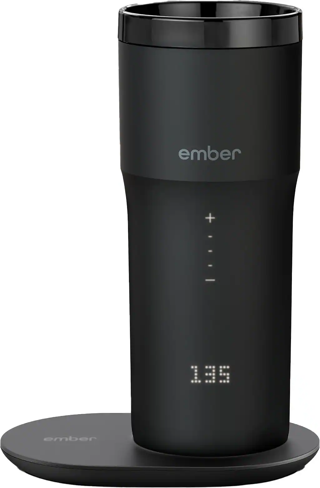 Maintain your perfect drinking temperature in the Ember Travel Mug 2+ for three hours on a single charge or all day on the included Charging Coaster 2.