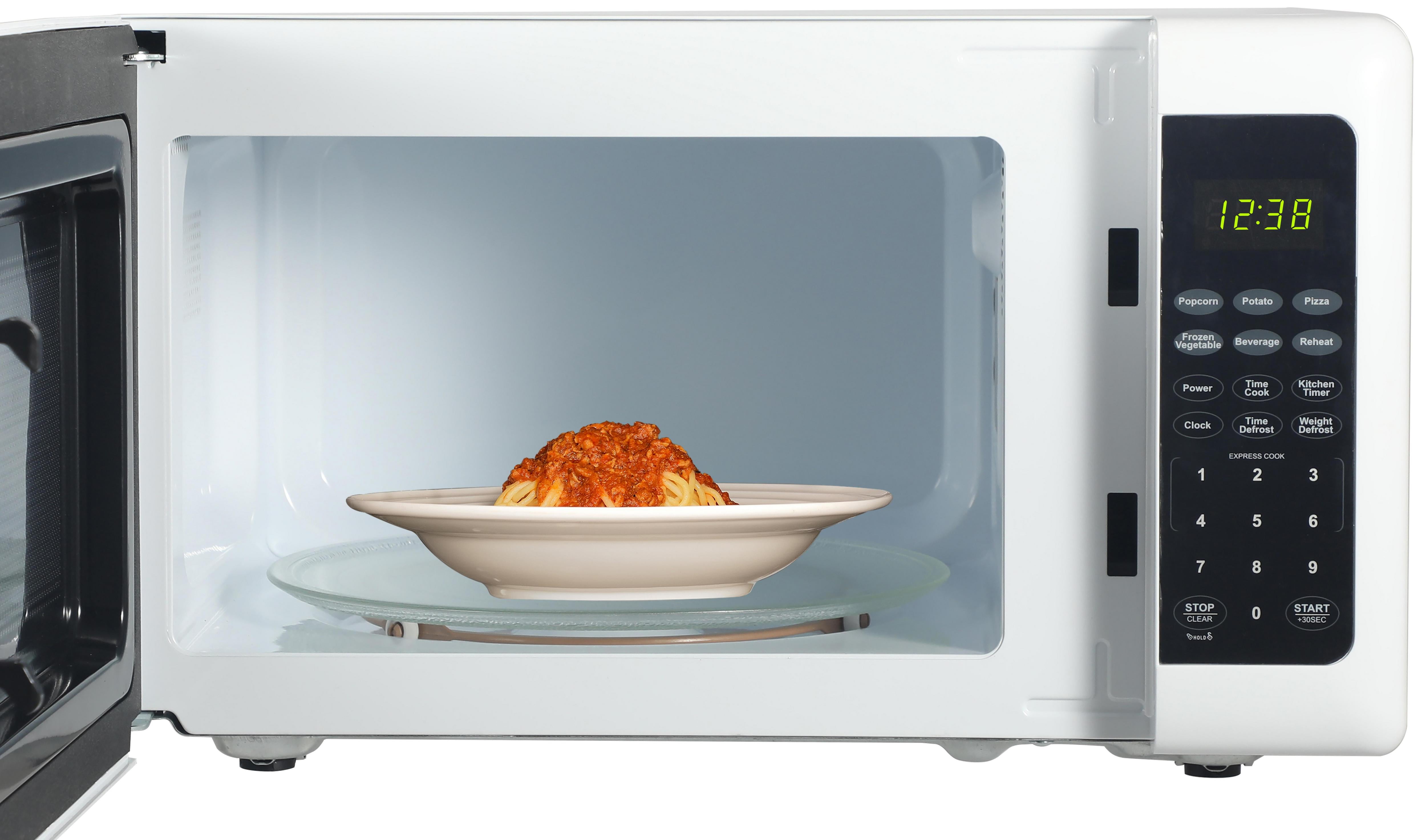 Microwave Output Power: 700 Watts 0.7 Cubic Feet of Cooking Space White Front and White Cabinet 10 Power Levels 6 Pre-programmed Settings (Popcorn, Potato, Pizza, Frozen Vegetable, Beverage, Reheat) Time and Weight Defrost 99-Minutes, 99-Second Digital Timer LED Display, Digital Clock Removable Glass Turntable Child-Safe Lock-Out Feature End-of-Cooking Signal