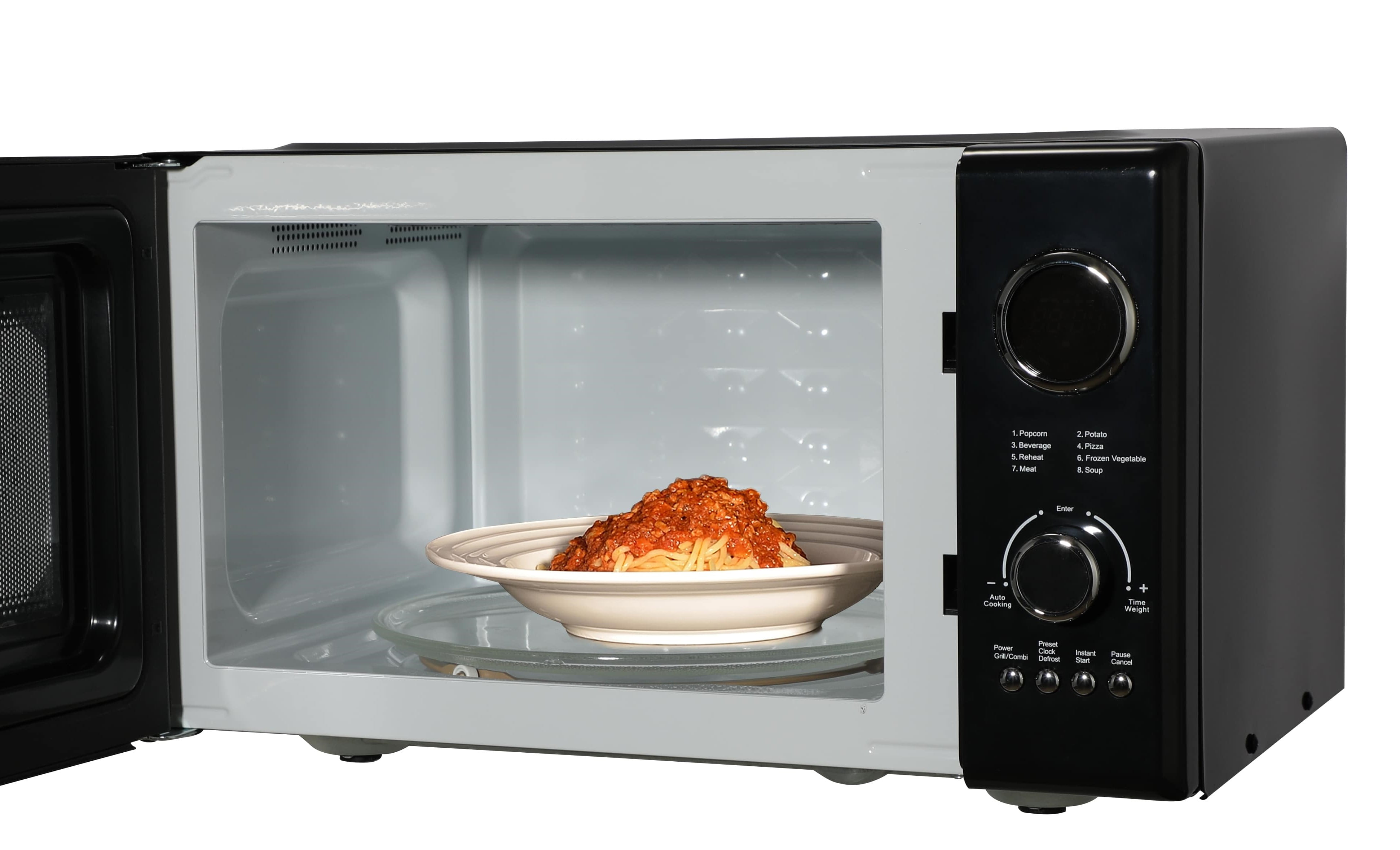 Heat up favorite foods using this Emerson 0.9 cu ft 800W Black Retro Microwave Oven with Grill. It allows users to cook in multiple modes, including microwave and grill for added convenience. This countertop microwave oven has 800W of microwave power and 1000W of grill power, so it will help create multiple meals that everyone can enjoy. It features 5 different power levels and nine quick and easy pre-programmed recipes. The convection microwave oven also has a glass turntable to ensure even and complete cooking. It is easy to maintain and can be placed on a kitchen island as well. This Emerson 0.9 cu ft 800W Black Retro Microwave Oven with Grill is ideal for heating up leftovers, toasting and more.