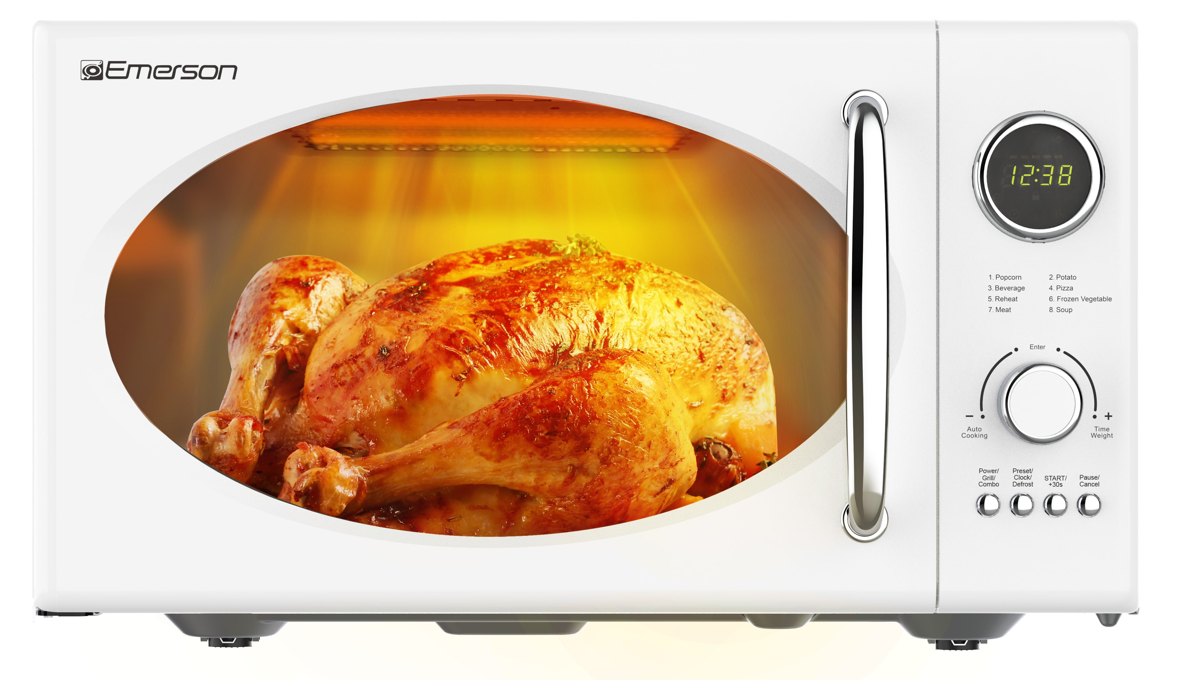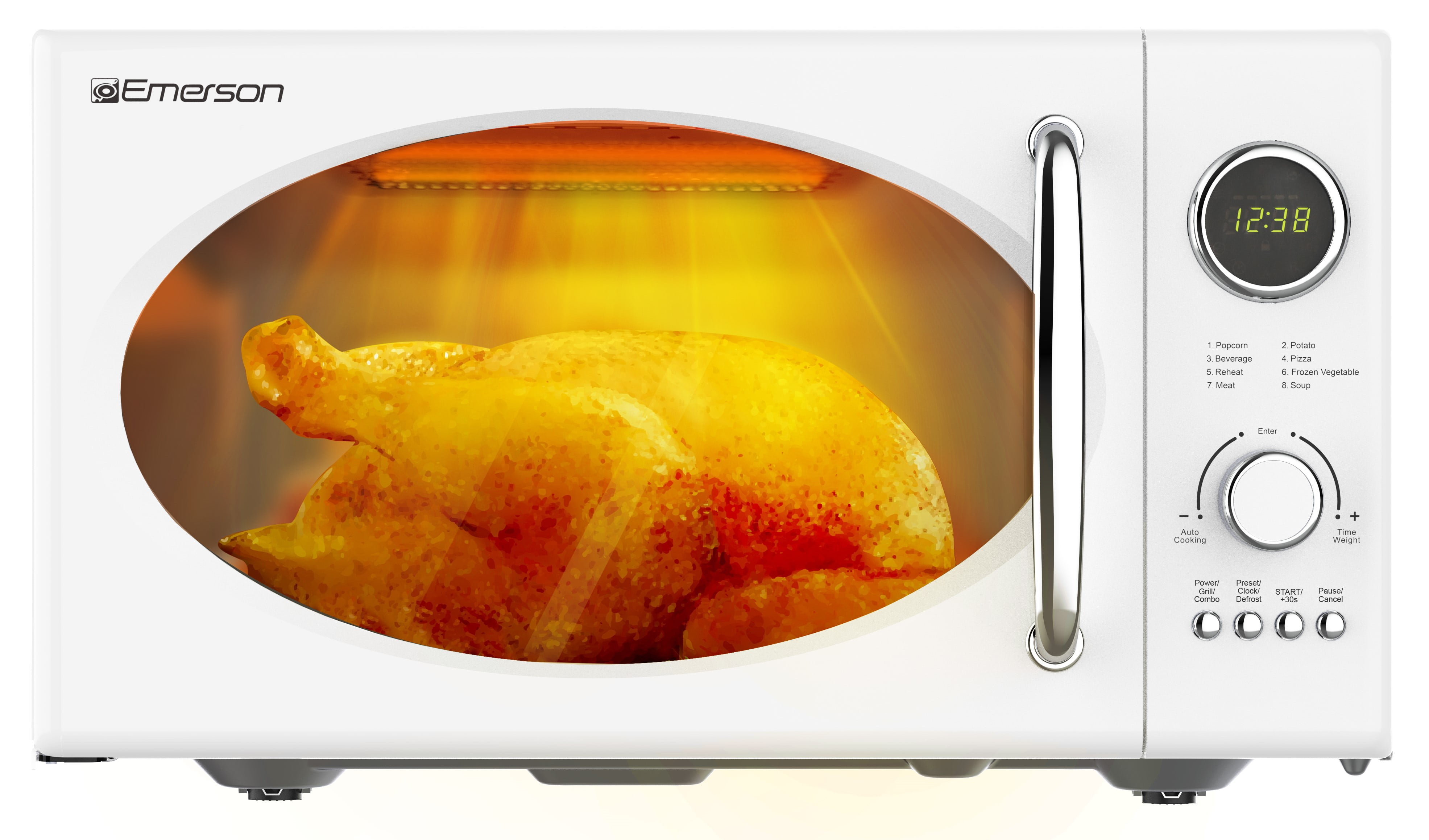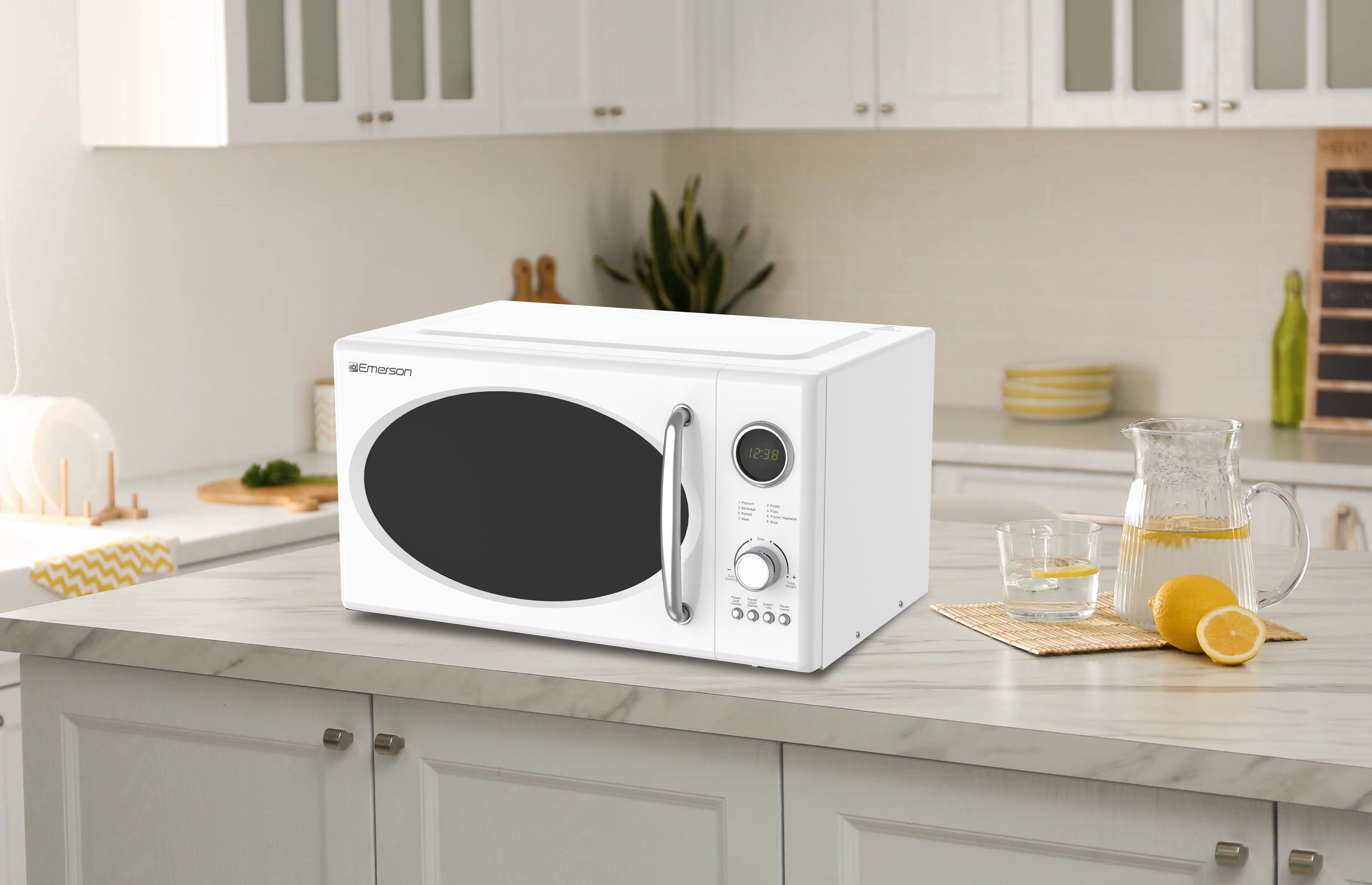 Emerson 0.9 Cu. Ft., 800W Retro White Microwave Oven with Grill, MWRG0901W