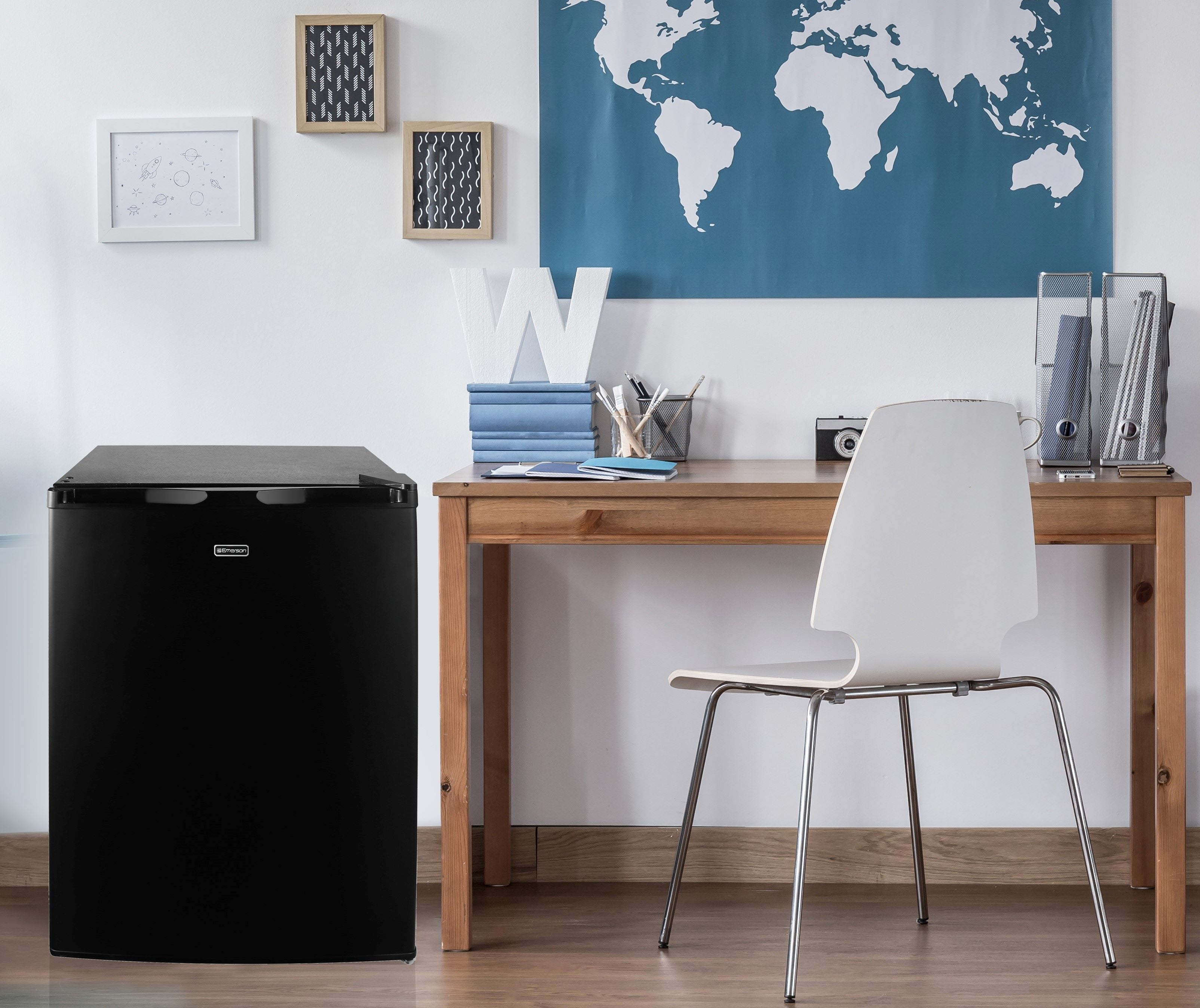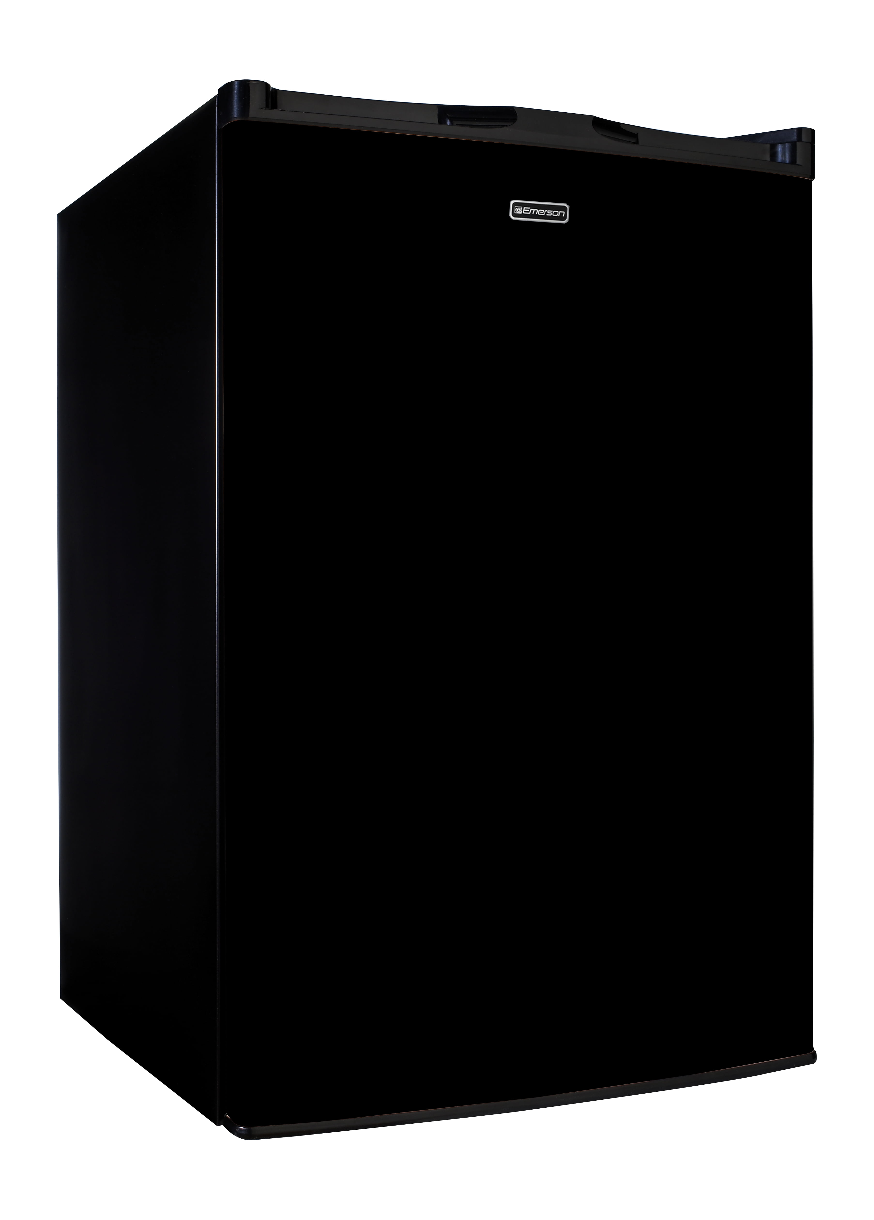 Emerson Radio’s Compact Refrigerator is ENERGY STAR® Qualified 4.5 Cu. Ft. Capacity Black Housing 2 Glass Shelves Flush Back Space Saving Design Recessed Handle Manual Defrost Mechanical Temperature Control with Adjustable Thermostat Adjustable Legs Separate Chiller Compartment Reversible Door Design