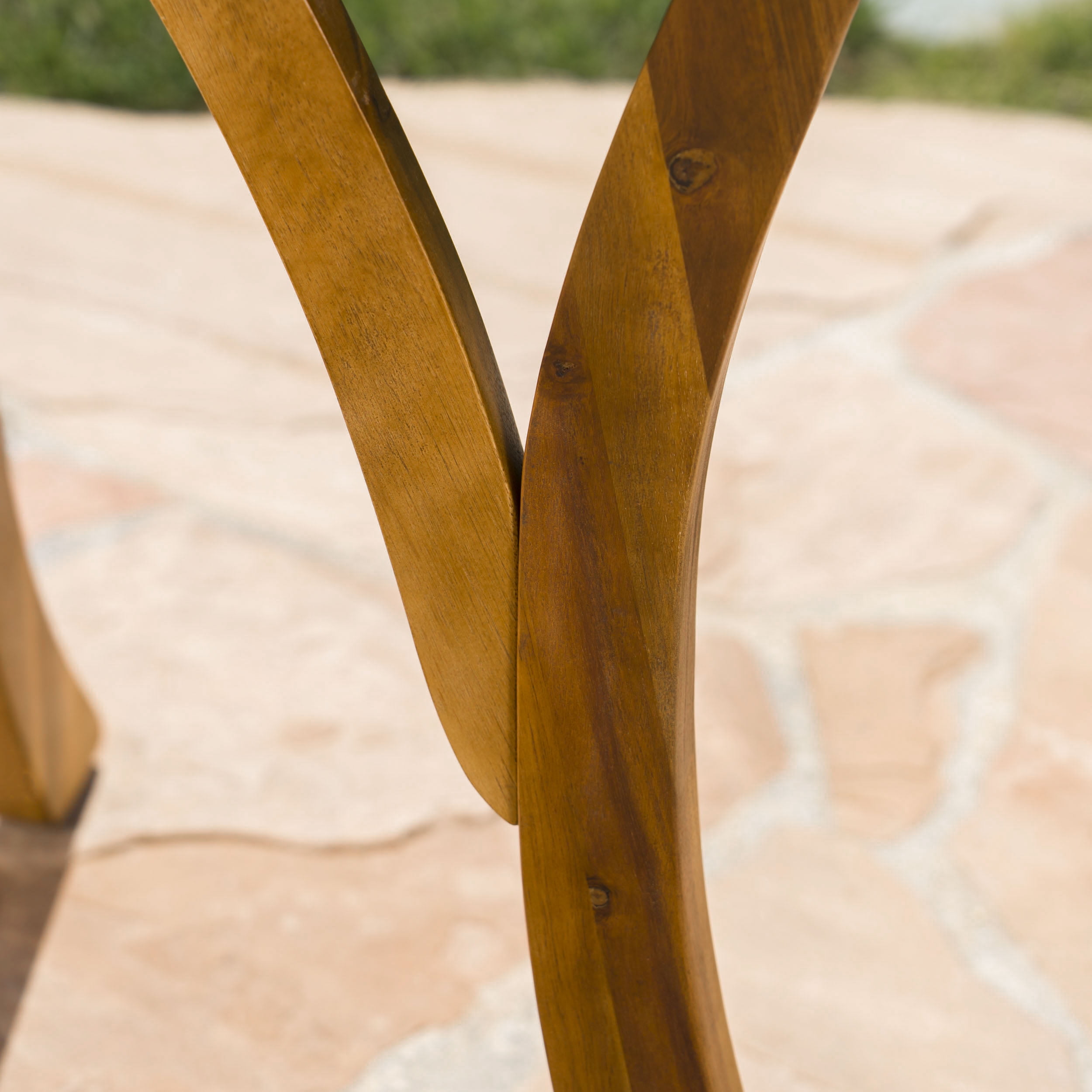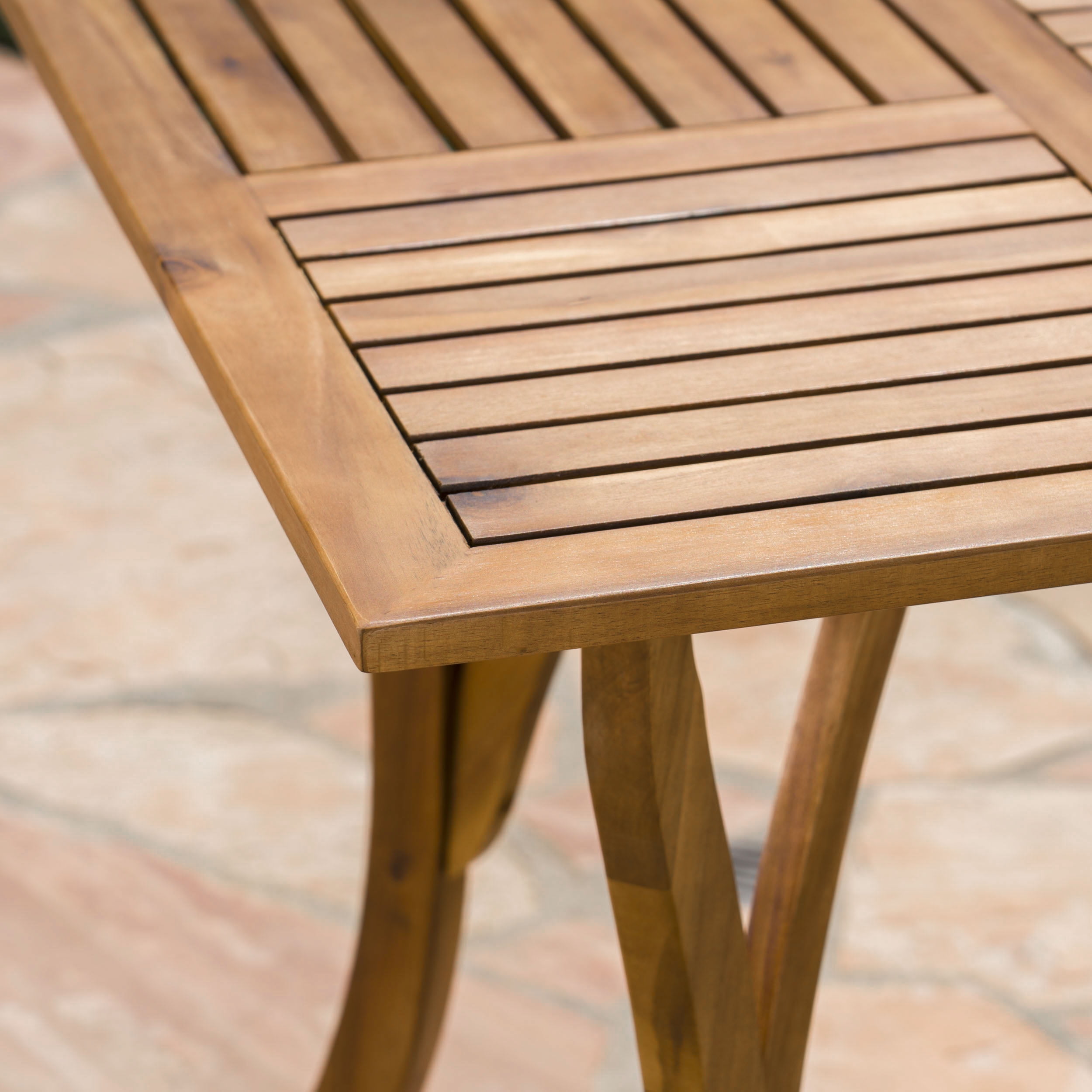 Includes: One (1) Table and Four (4) Chairs Table Material: Acacia Wood Chair Material: Polyethylene Wicker Chair Frame Material: Iron Wood Finish: Teak Wicker Finish: Multibrown Assembly Required Hand Crafted Details Table Dimensions: 31.50 inches deep x 31.50 inches wide x 30.00 inches high Chair Dimensions: 25.25 inches deep x 25.00 inches wide x 35.25 inches high Seat Width: 16.10 inches Seat Depth: 20.50 inches Seat Height: 19.60 inches