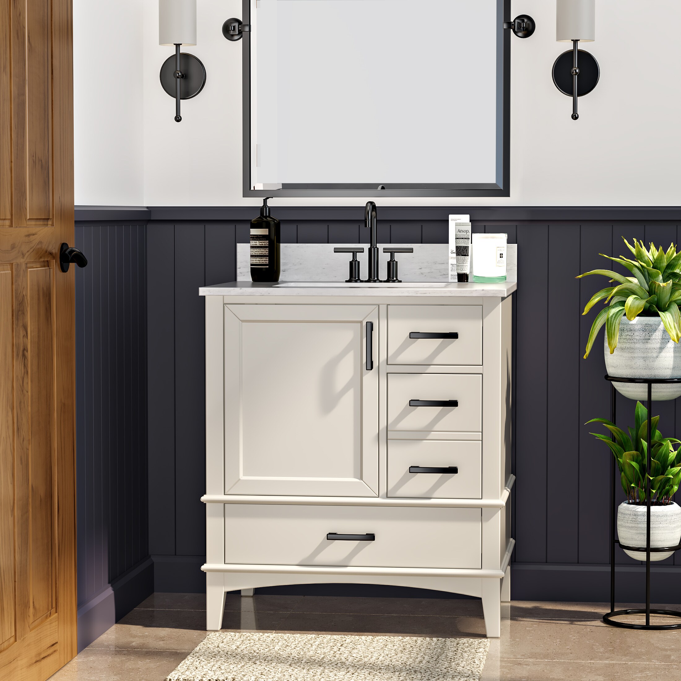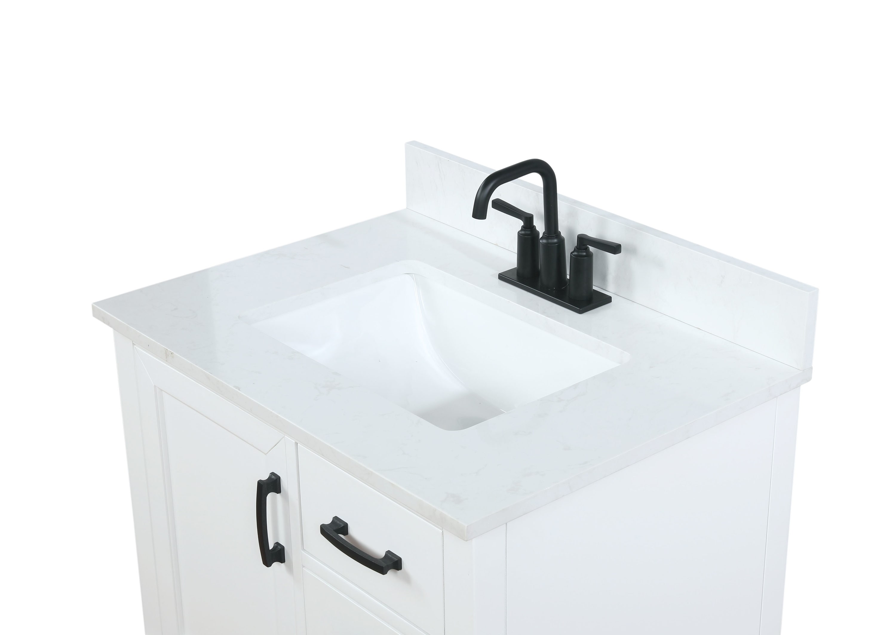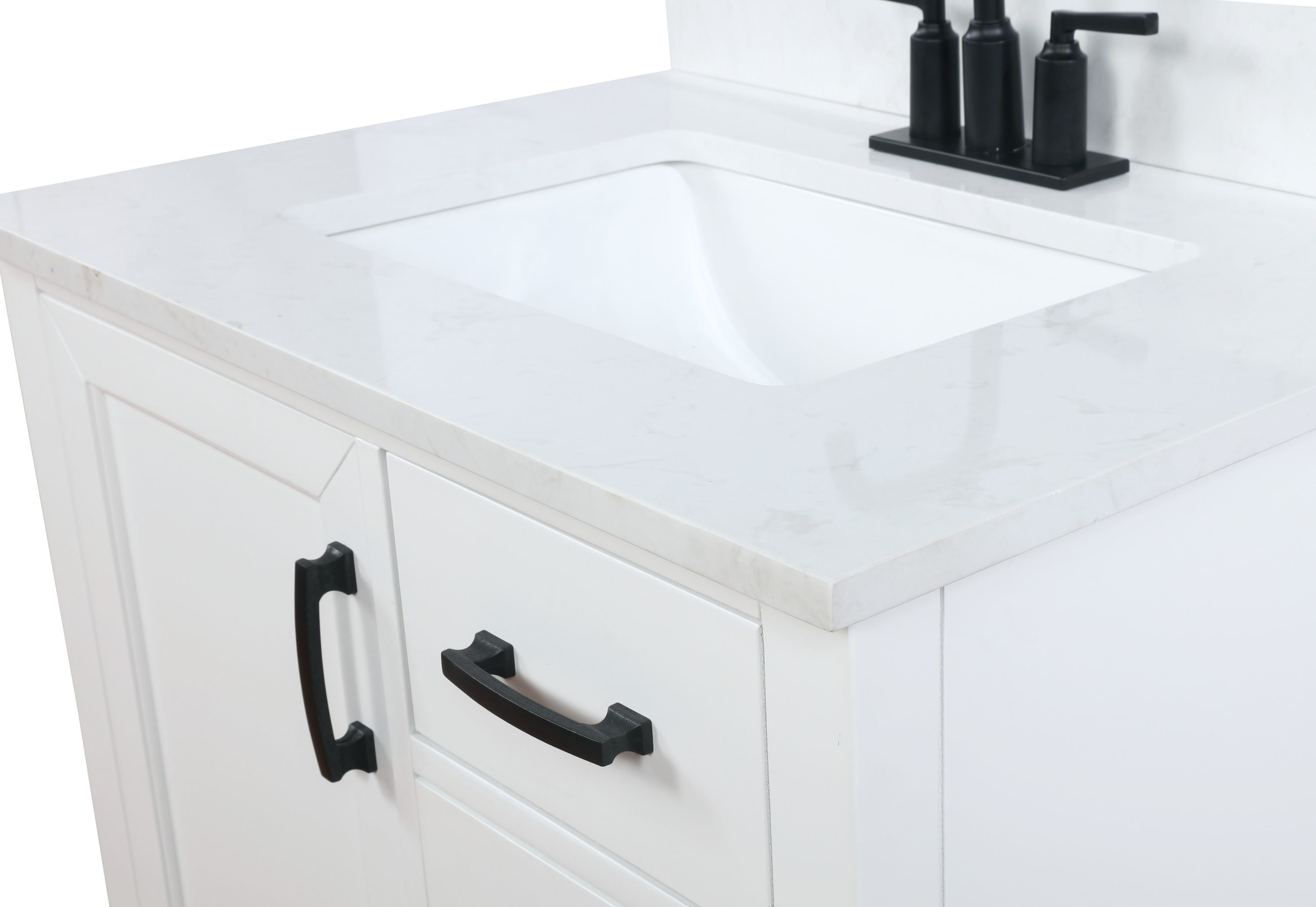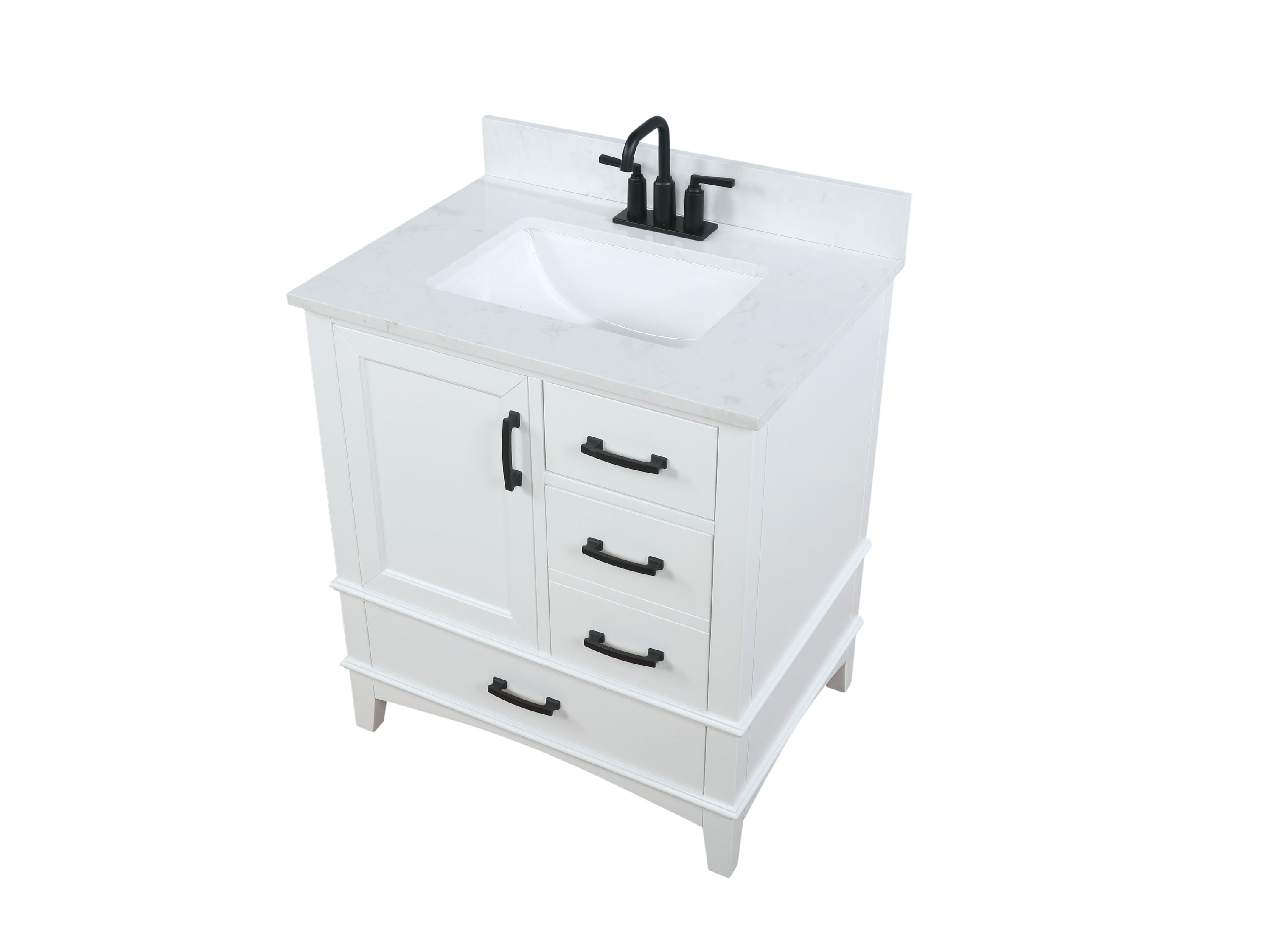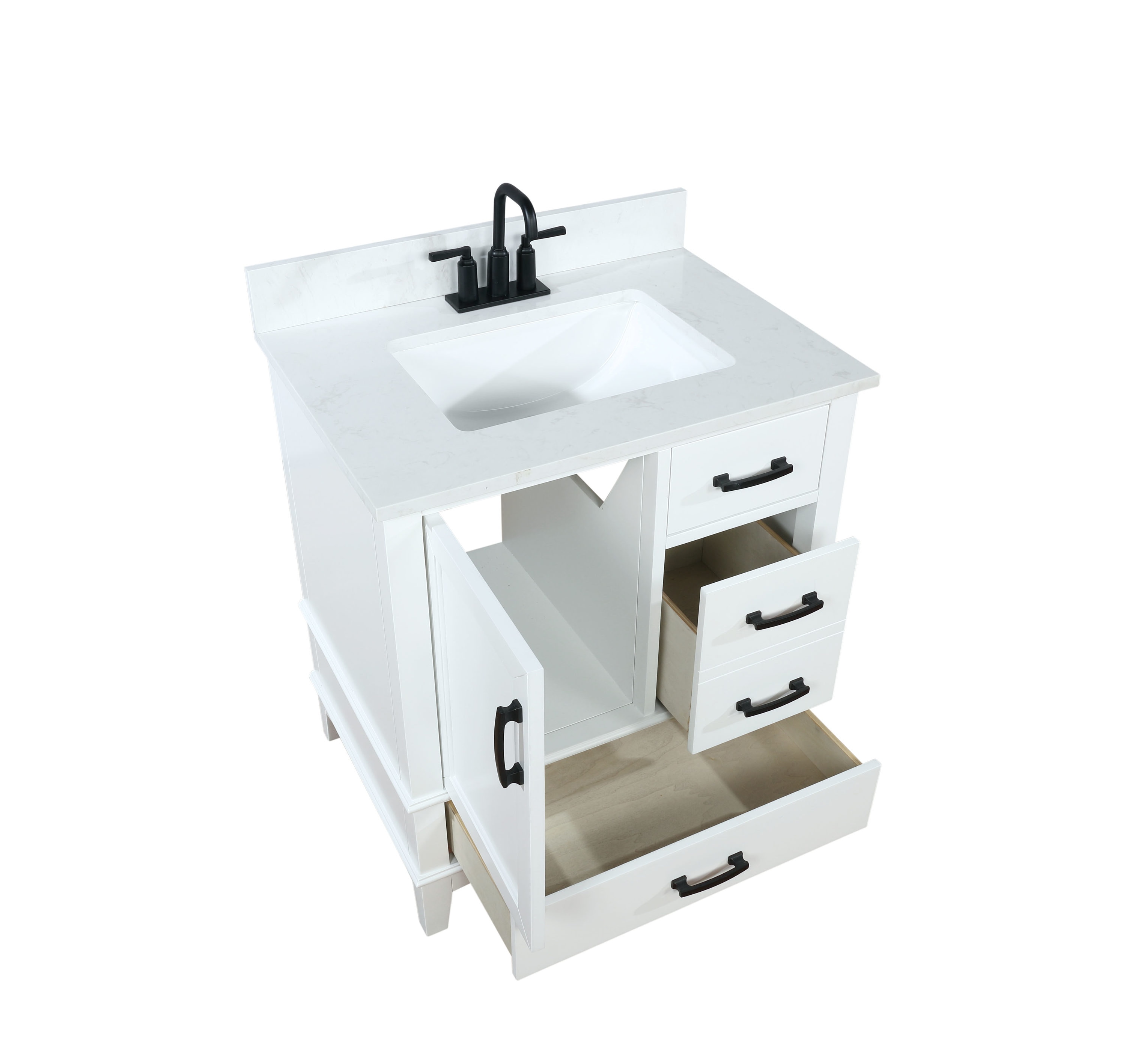 Contemporary elegance defines the Emily Bath Vanity collection by Runfine and its practical design offers a style with ample functional hidden storage.The modern cabinet design is complemented with a beautiful Carrara White cultured marble top with backsplash included.Recessed slow close doors and drawers finished off with tapered feet connected with a low-rise arc apron complement the modern design with solid matte black hardware.The perfect vanity for any bathroom in your home if you are looking to add a level of modern sophistication and gain the additional storage you’ve always needed.The Emily bath vanity is available in multiple sizes.