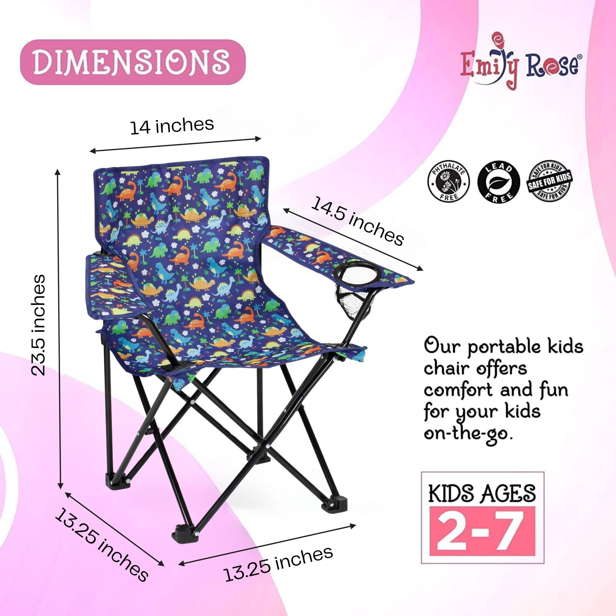 Emily Rose Foldable Kids Camp Chair with Cup Holder, Playful Dinosaur Print