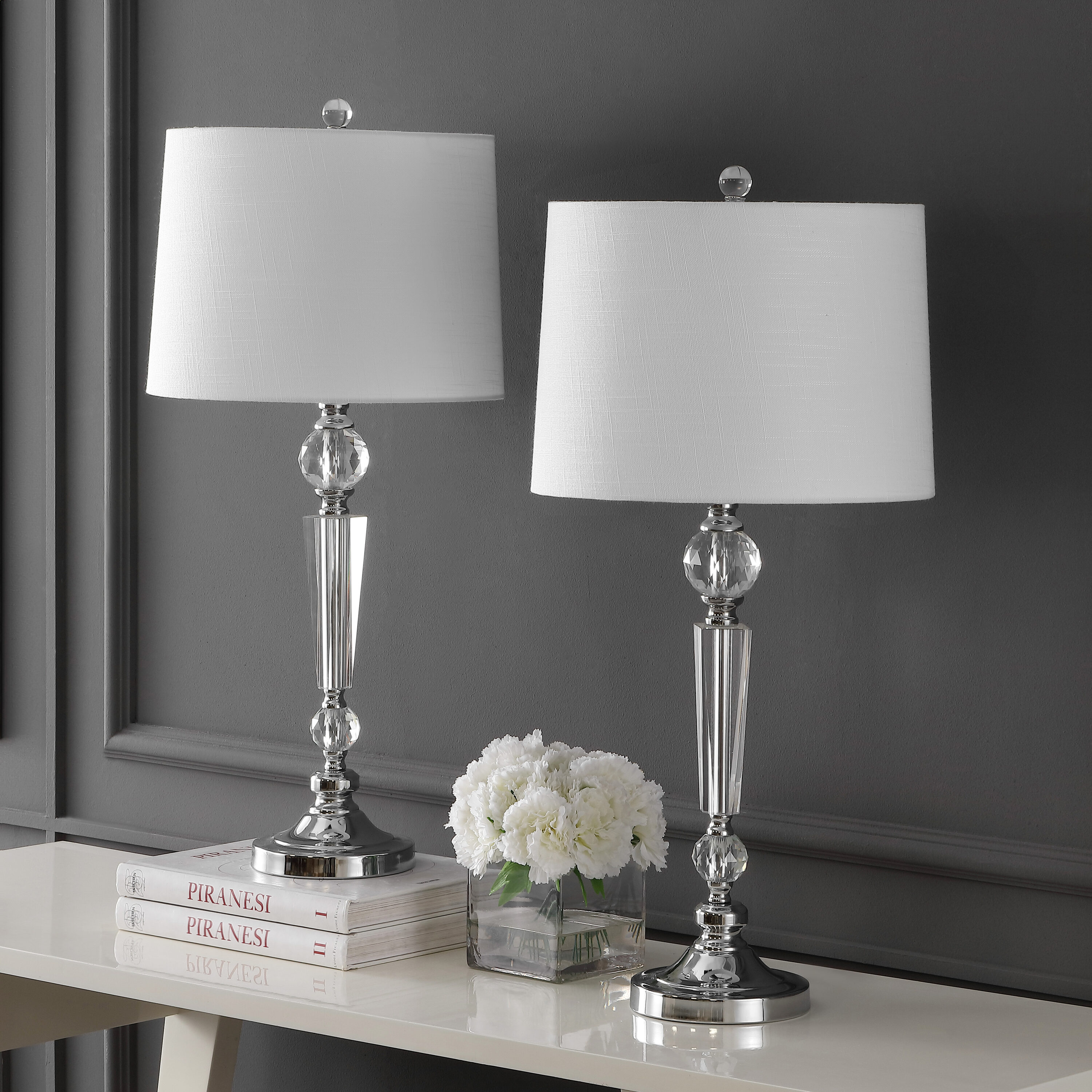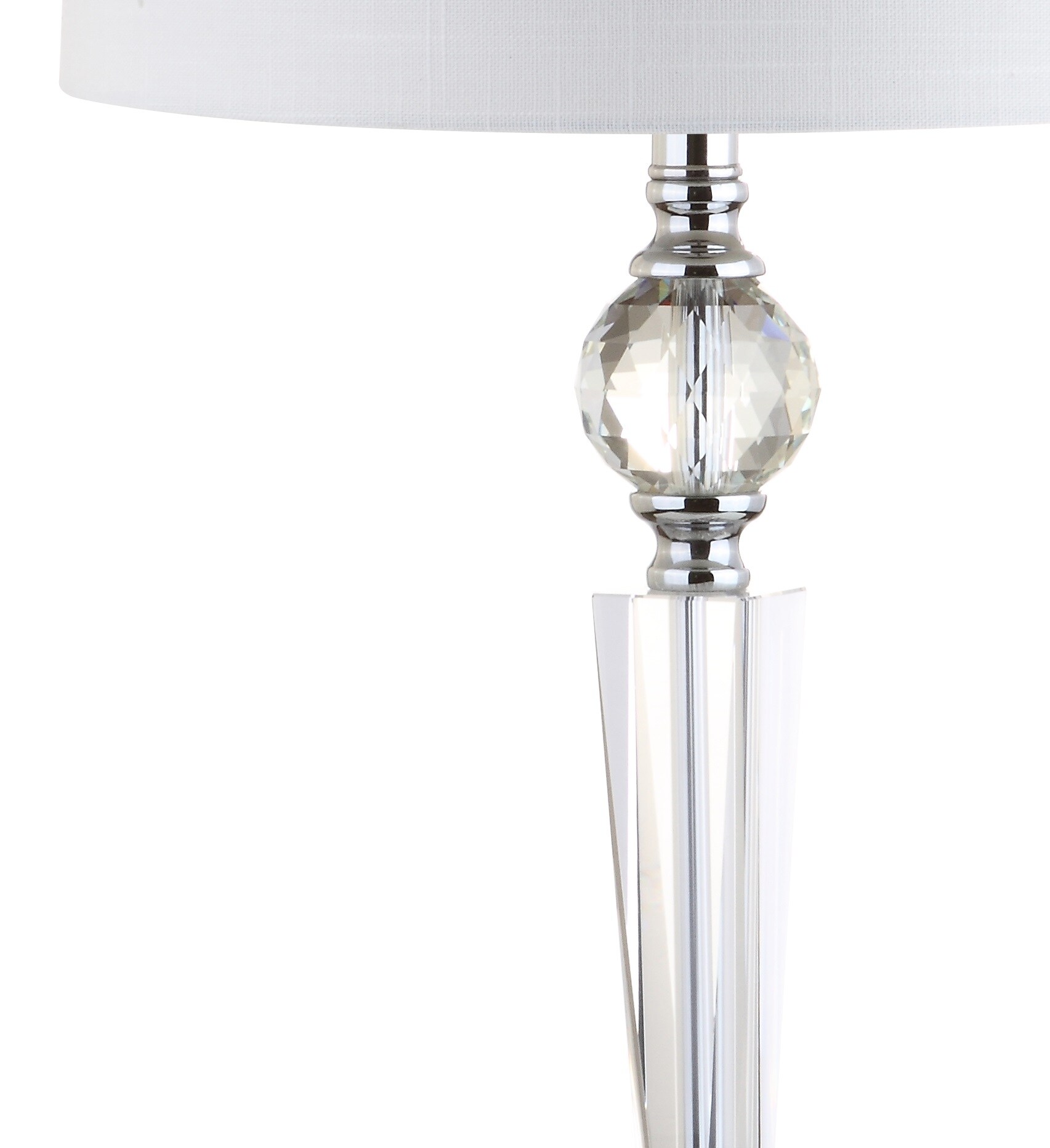 Inspired by antique candlesticks, this crystal lamp base evokes classic elegance with modern functionality. The cord is wrapped with silk, in the traditional style, but the wiring accommodates any standard 60 watt bulb, including LED. A cotton drum shade adds a contemporary finishing touch on this classic style.